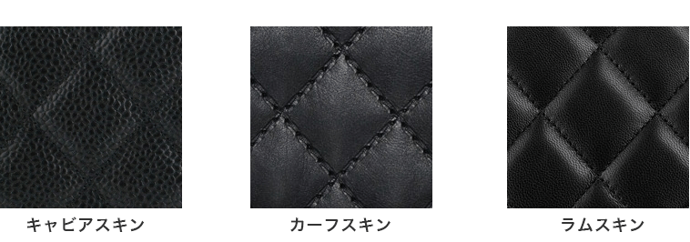 マトラッセラインのアイテムは、その多くが素材に動物の皮を使用しています。代表的なものは「キャビアスキン」「ラムスキン」「カーフスキン」の3種類です。