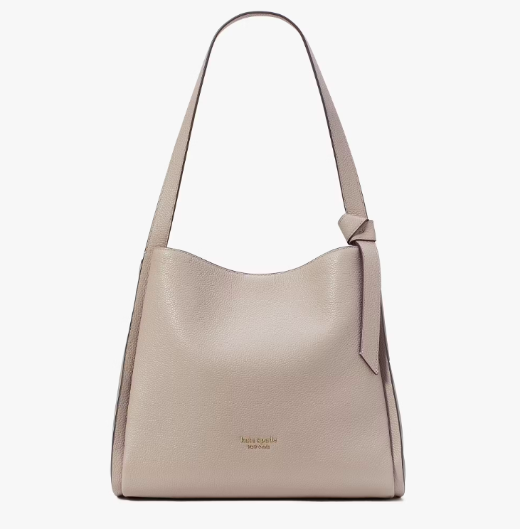エレガントなデザインで収納力のあるショルダーバッグ。持ち手に結び目があり、大人の女性らしい上品さが表現されています。カジュアルスタイルではもちろん、落ち着いたデザインなのでビジネスシーンでも使用できるでしょう。