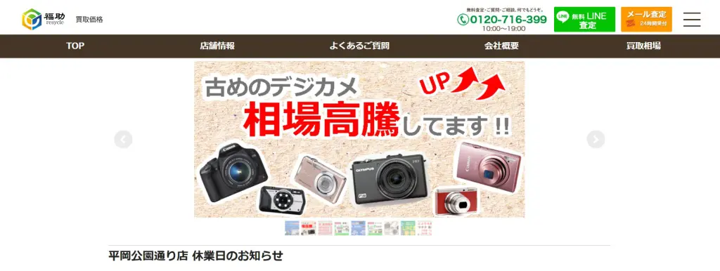 詳細へ | ★★★☆☆3.6 | 店舗が札幌市内に複数ある | ○ | ○ | ○ | あり | 全国 | 要問い合わせ | なし | 10:00~21:00(買取受付は~20:30) | 古着、ブランド品、AV・生活家電、家具など | 第541162001000号 |