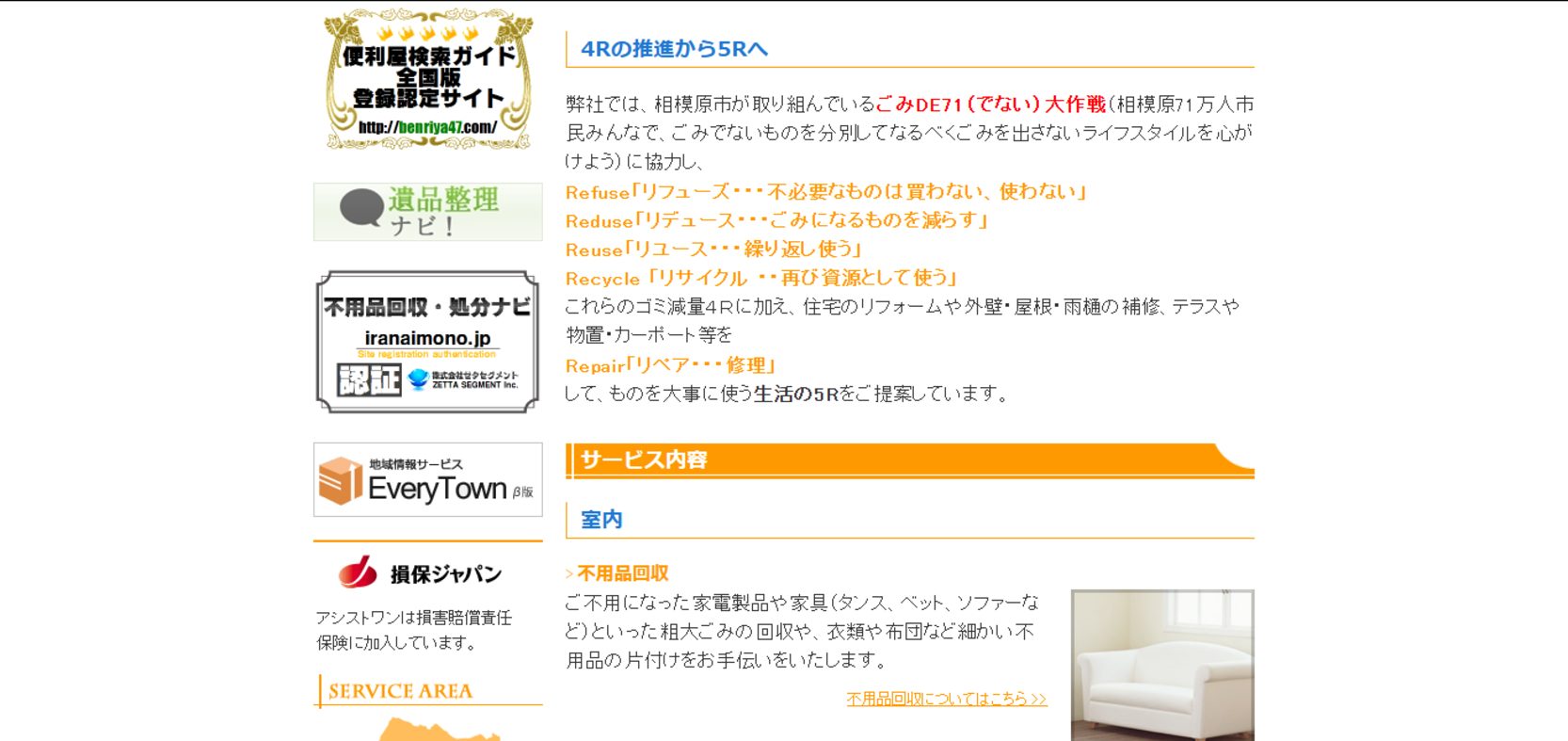 出典:クリーンサービス, Google,アシストワン,フレッシュマンサービス,クリーン・ベア,ユーティリティサービス,相模原遺品整理&部屋片付け無料相談センター