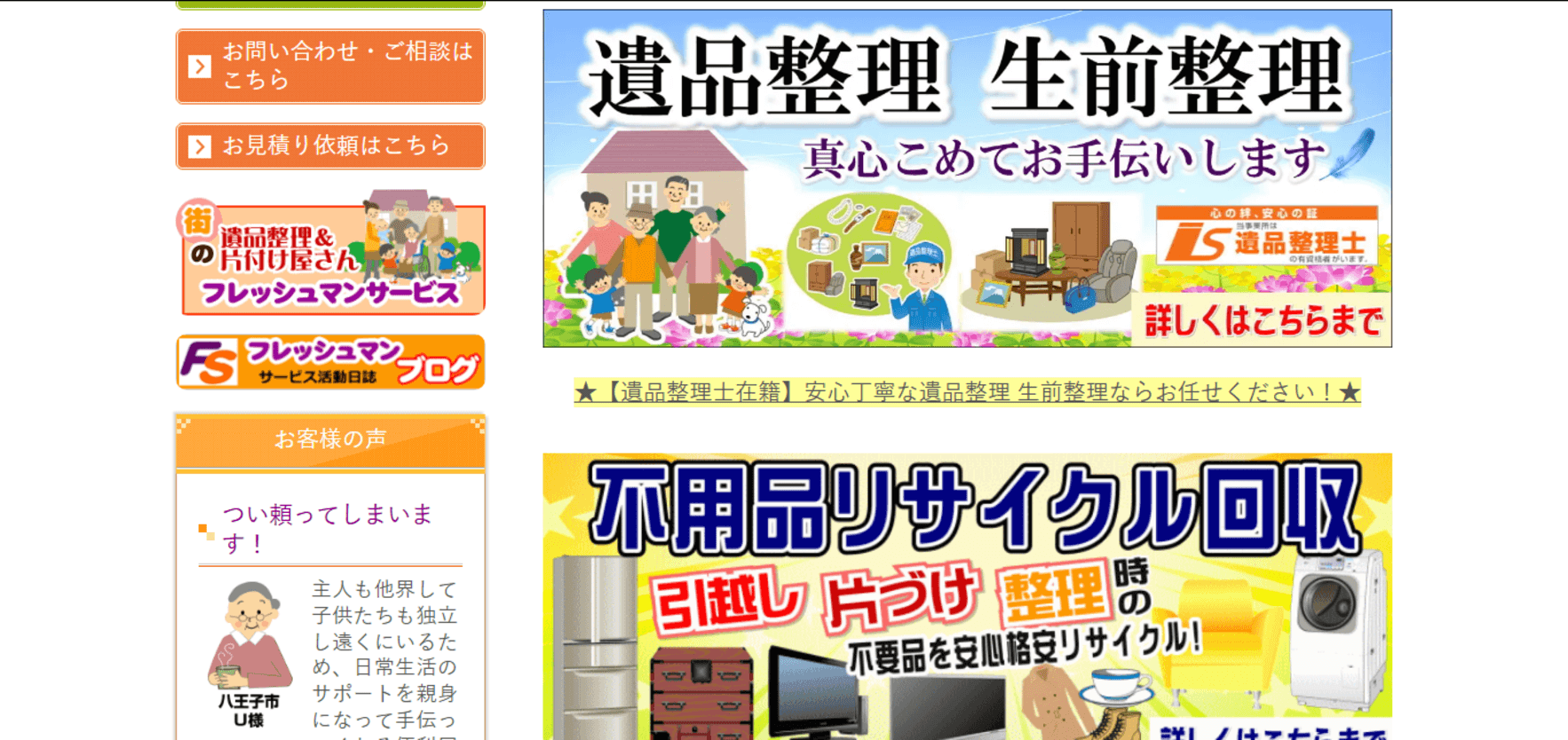 | 運営会社名 | 便利屋&片付け屋さんフレッシュマンサービス |
