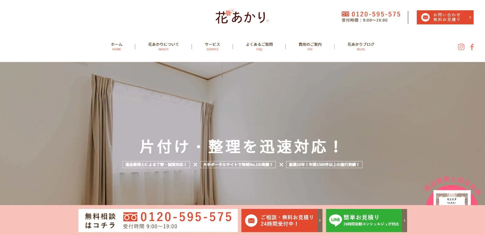 | 問い合わせURL | https://hanaakari-ihinseiri.com/contact/ |