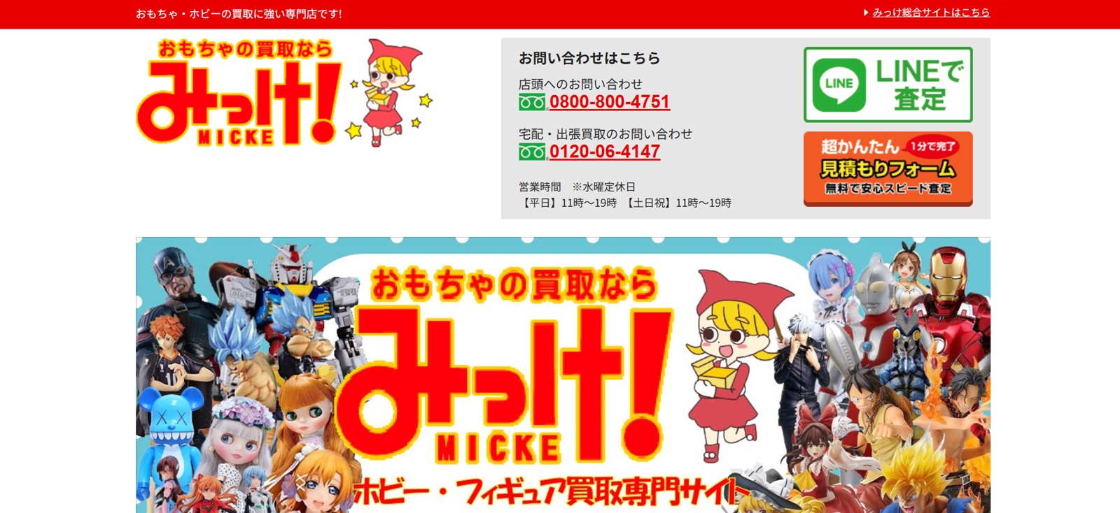「おもちゃリサイクルみっけ」は、おもちゃ・ホビーの買取に強い専門店です。フィギュアの買取実績が豊富で、フィギュア別の買取価格も公表しています。