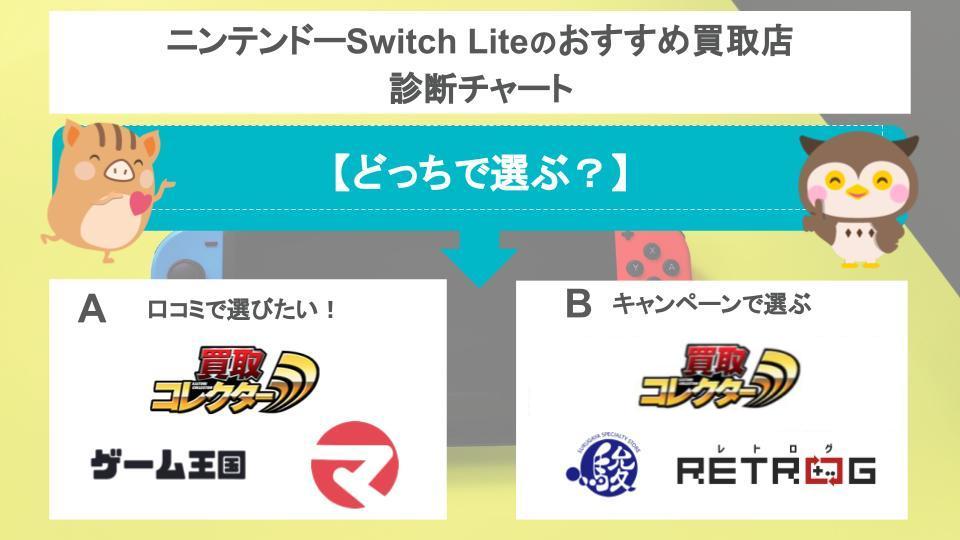 Nintendo Switch Lite(スイッチライト)を扱っている買取店はたくさんあるので、どこがいいかわからない方もいるでしょう。上記のチャート表を参考にしながら、自分に合ったスイッチライトの買取店を選んでみましょう。