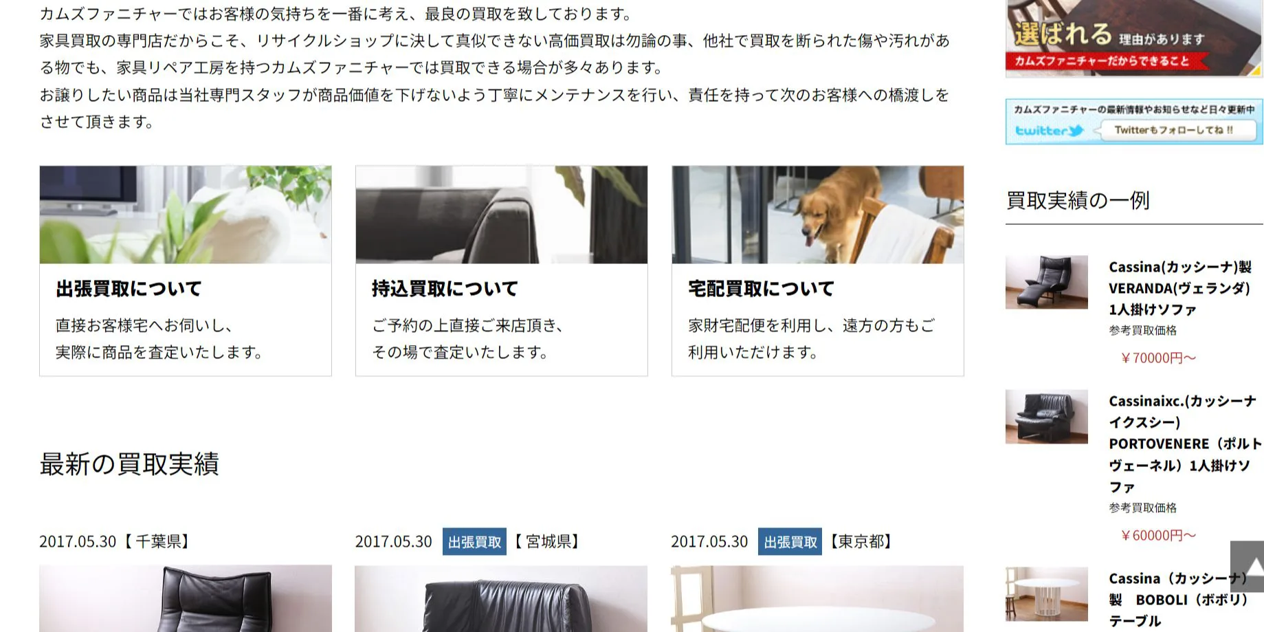 公式サイトではこれまでの買取実績を公開しています。査定結果に関するコメントも掲載されているので、お持ちの家具の買取金額をイメージしやすいでしょう。