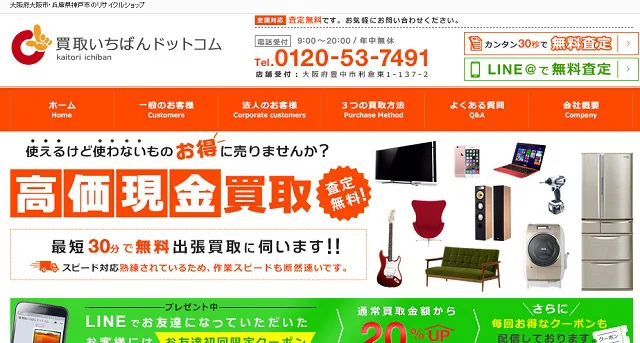 買取いちばんドットコムは、兵庫、大阪、神戸で出張買取をメインに行っている業者です。こちらの業者はサイトで買取実績を画像付きで公表していて、相場がわかりやすく納得できる買取業者となっています。