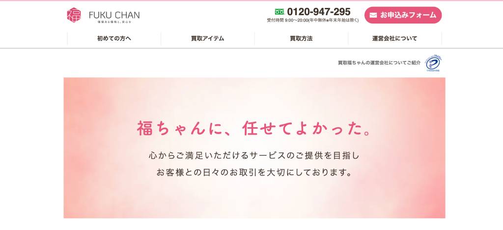 福ちゃんは、着物やブランド品などを取り扱う総合買取店です。買取や査定に掛かる手数料は全て無料なので気軽に申し込めるでしょう。