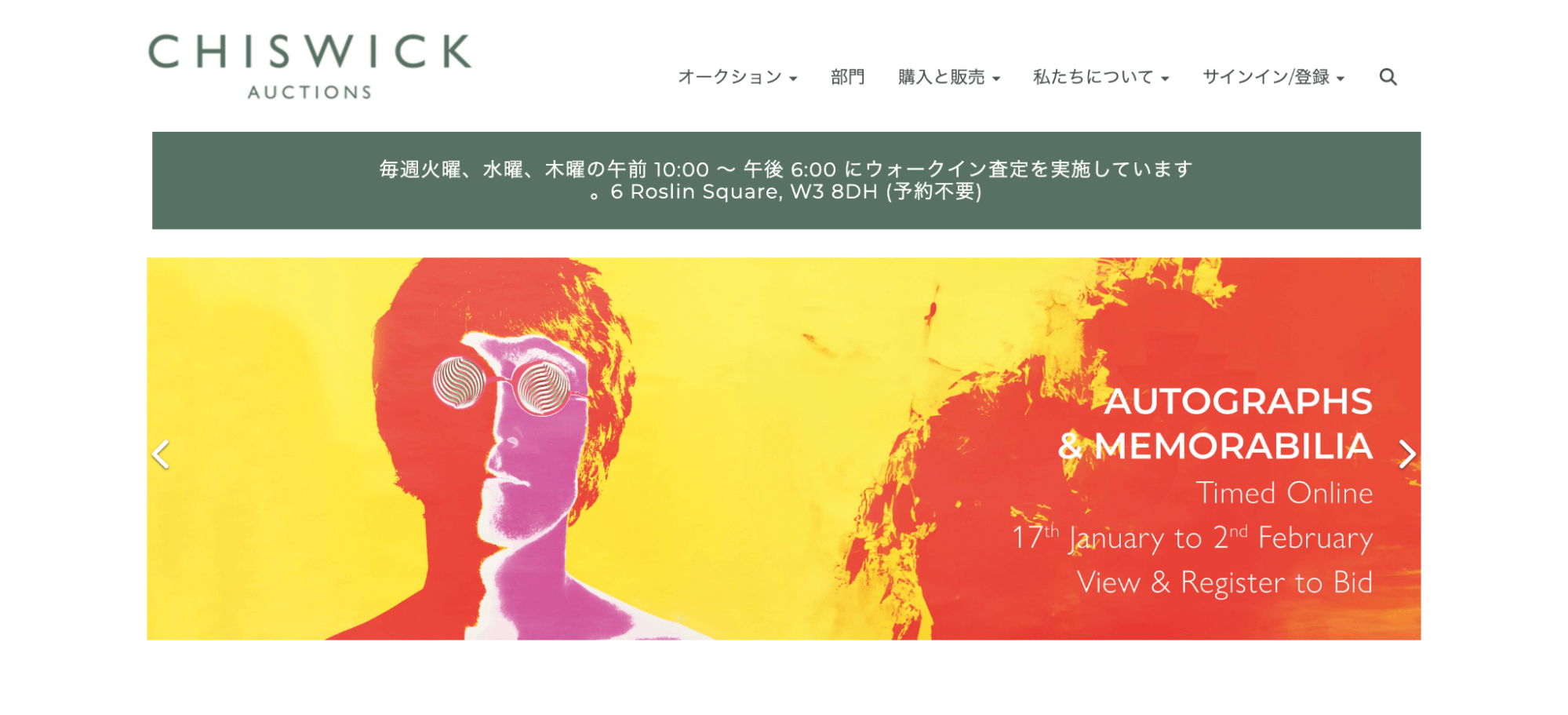 RRauctionは、歴史的文書や有名人のサイン・作品、スポーツ収集品などのオークションや委託販売を行っているアメリカのオークションハウスです。