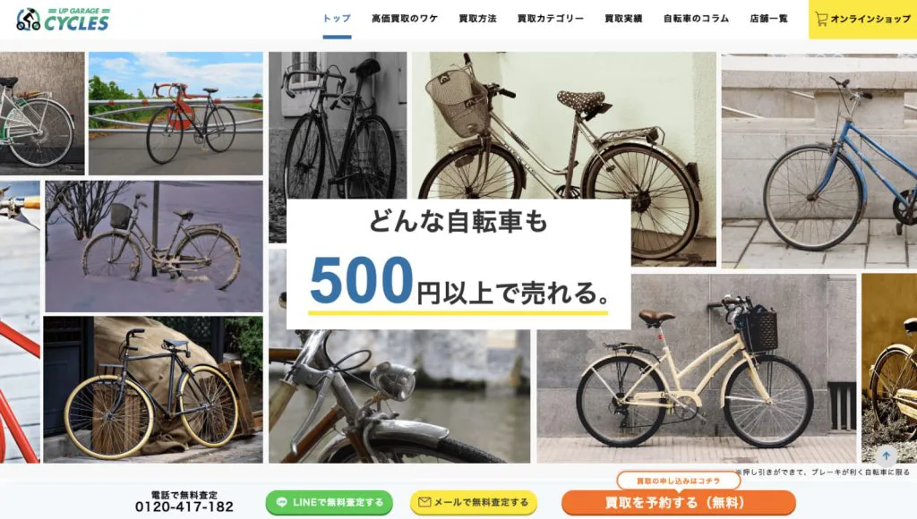店頭・出張・宅配という買取方法に加えて、オンライン査定を行っている点もアップガレージサイクルズの特徴のひとつ。自宅にいながらにして簡単におおよその査定金額がわかるので、ぜひ気軽に試してみてください。