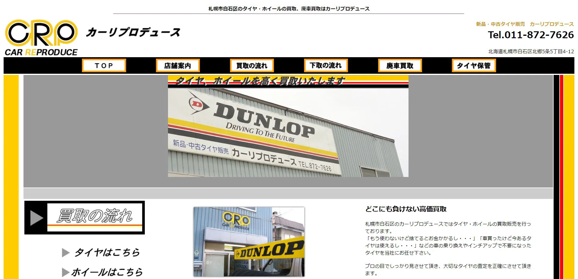 カーリプロデュースは、札幌に店舗を構えるタイヤの買取・販売店です。