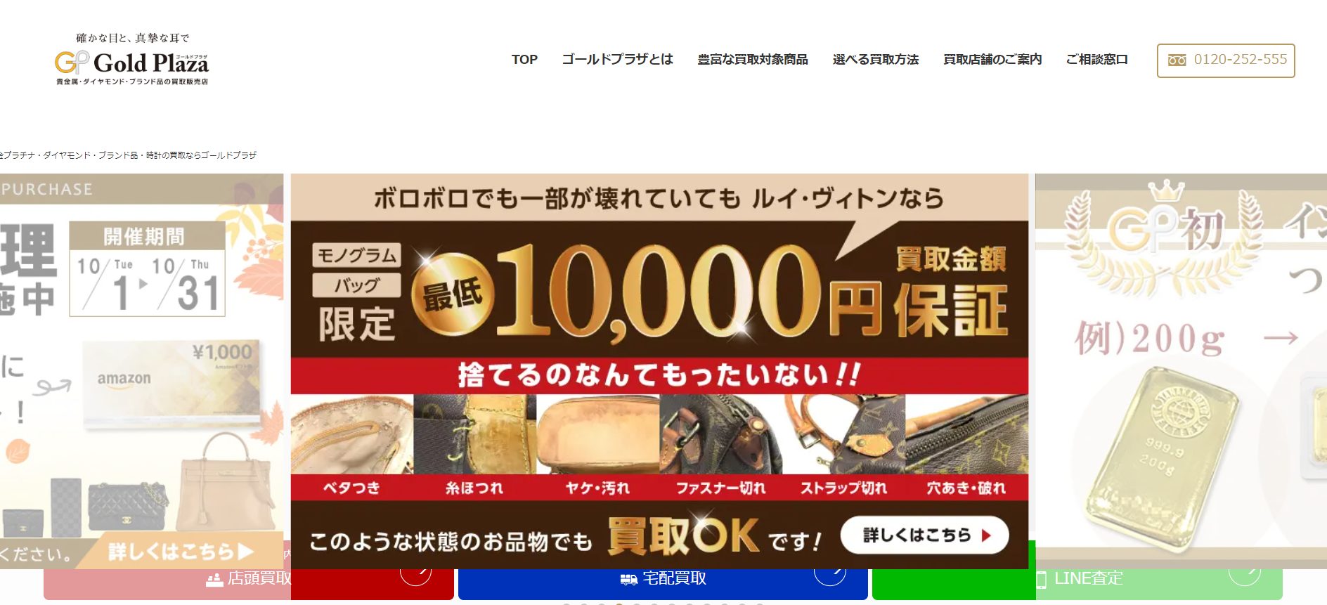 ゴールドプラザは、関東と関西に複数の店舗を展開する買取店です。買取方法は店頭買取のほかに宅配買取や出張買取に対応しており、宅配買取の累計利用者数は40万人を突破しました。