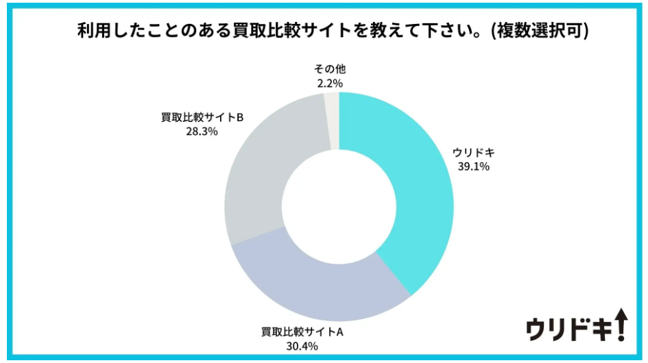 買取店を効率よく比較するなら、無料一括査定サービスのウリドキがおすすめです。ウリドキなら一度の申し込みで最大10社にまとめて査定を依頼できるので、忙しくて店舗に行けない方でも簡単に買取相場を比較できます。