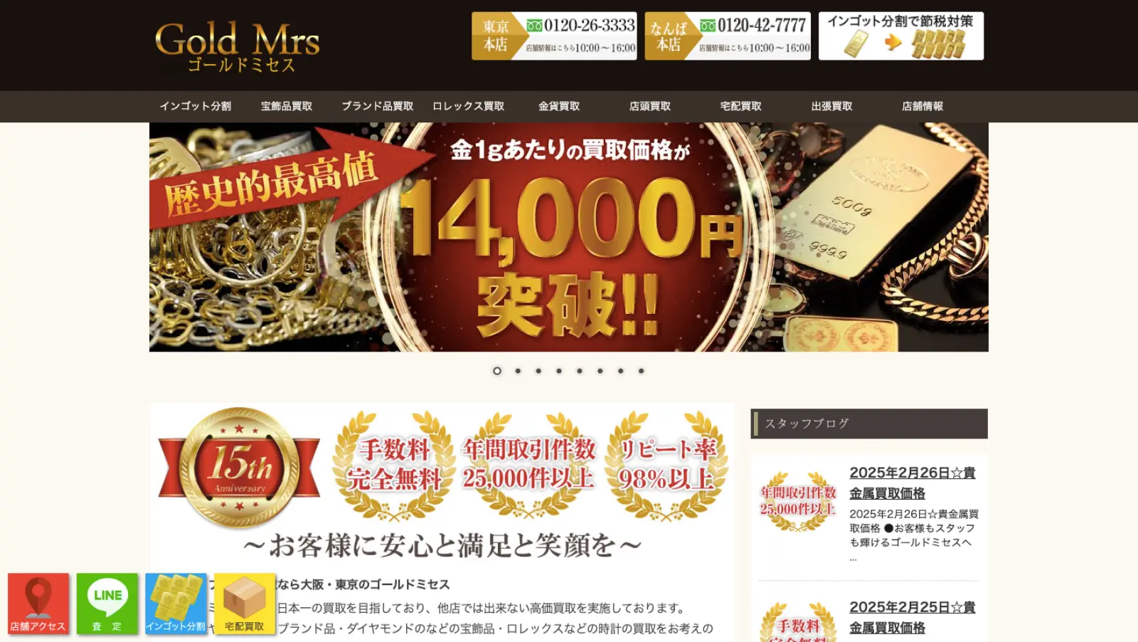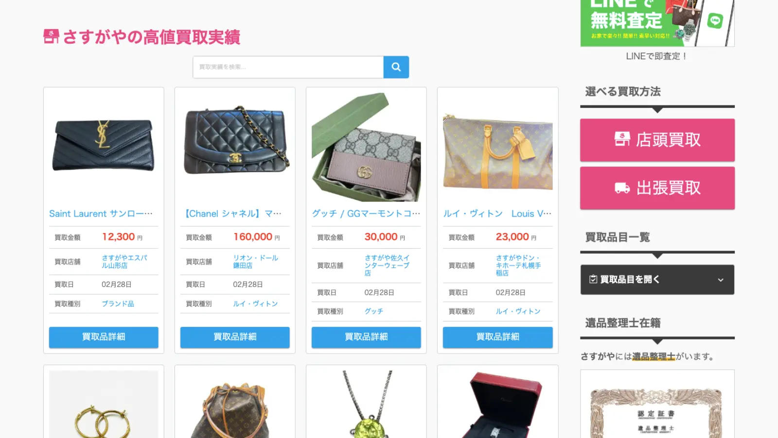 買取実績は公式サイトにて確認できます。金の売却を検討している方は、事前にチェックしてみると良いでしょう。