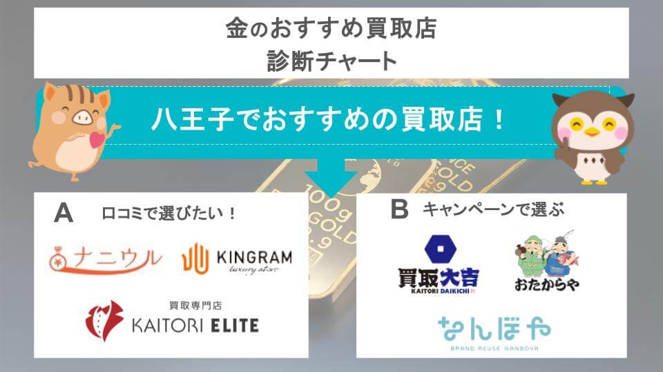 八王子で金を売りたい方は、上記のチャートを参考に利用する買取店の目星をつけましょう。