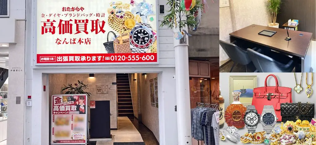 詳細へ電話する | ★★★★☆4.8 | なんば駅直結でアクセス良好。着物からブランド品まで幅広く買取。 | ○ | ○ | ○ | あり | 全国 | – | なんばCITYに準ずる | 11:00~21:00 | 着物、切手、古銭、骨董品、ブランド品、宝石、時計、お酒など | 第301041408603号 |