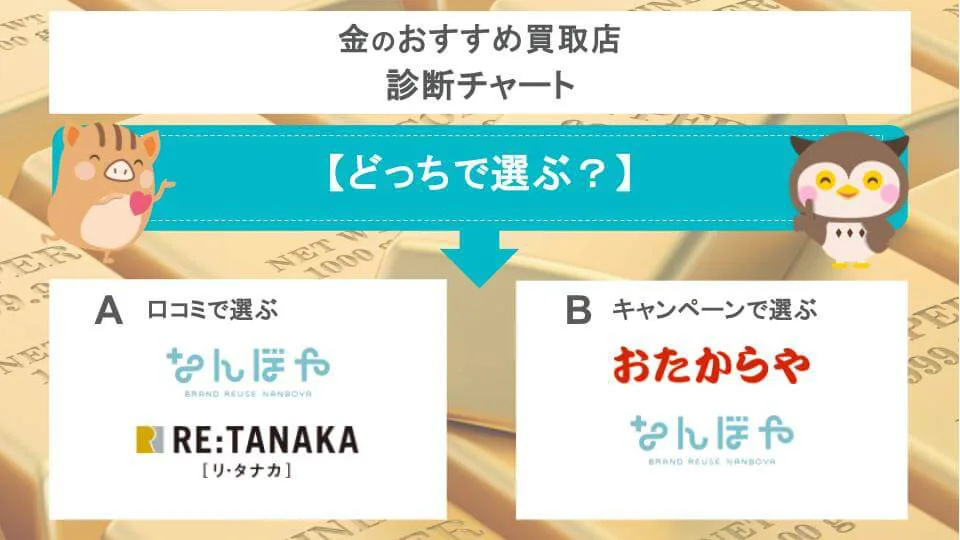 もしお店選びで迷ってしまう人は、以下チャートからおすすめ店を見つけてみましょう。ウリドキではキャンぺーン情報・口コミがともに良いお店を紹介します!