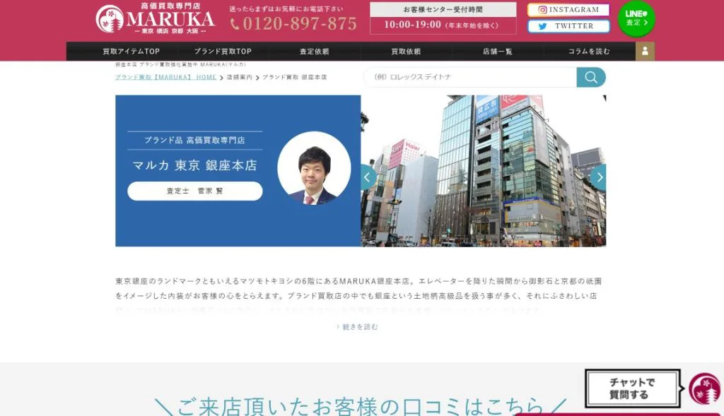 MARUKAは、創業70年の信頼と実績がある買取店。東京、横浜、京都、大阪など、大手競合店が集中している地域に店舗を展開しています。