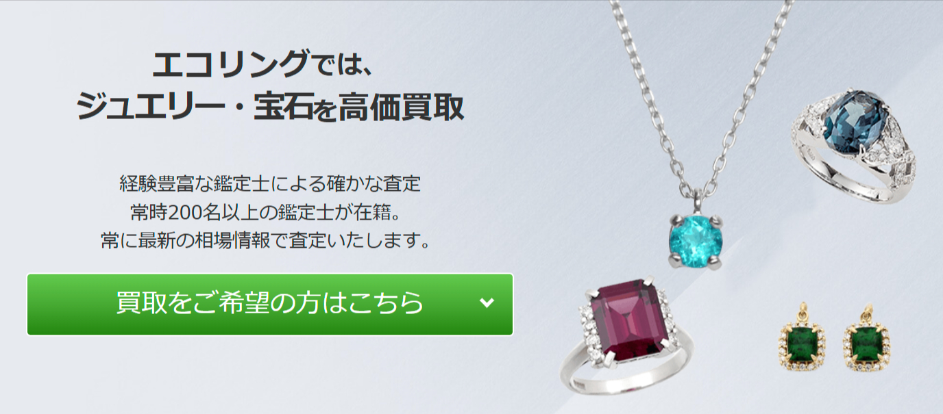 | エコリング | 詳細へ | ★★★★☆4.8 | 幅広いジャンルの買取に対応 | ○ | ○ | ○ | あり | 北海道、東京、静岡、京都、鹿児島など | 北海道、東京、静岡、熊本など | 店舗による | 店舗による | ブランド品、ジュエリー、香水・コスメなど | 第631600300036号/td> |