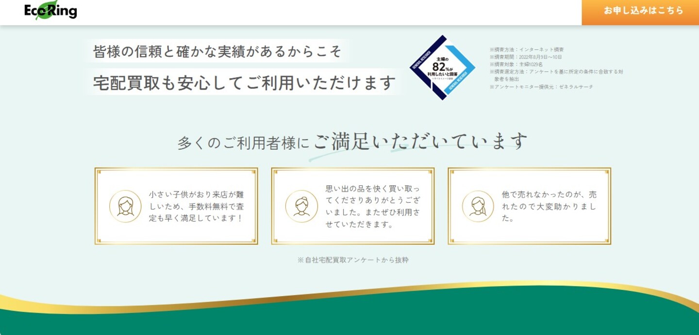 エコリングの査定士は査定スキルが高いだけでなく、丁寧な接客力も支持されています。初めて買取を利用する人でも不安を抱かないよう、丁寧な対応を心がけているのです。