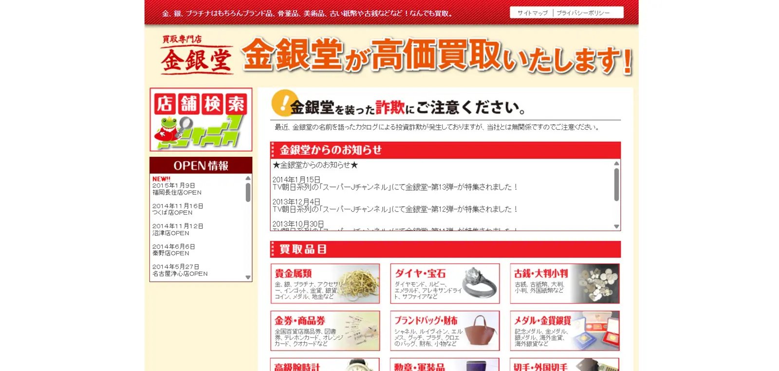詳細へ | ★★★★☆4.8 | 貴金属類の取扱い実績多数 | 〇 | 〇 | 〇 | あり | 宮城県仙台市青葉区 | 全国 | 年中無休 | 11:00~19:00 | 貴金属、ブランド品など | 第301102004121号 |