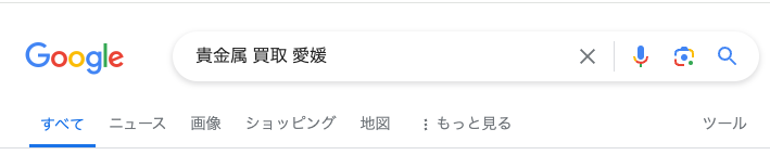 Googleで「貴金属 買取 愛媛」と、以下のように検索すると多くの買取店がでてきます。