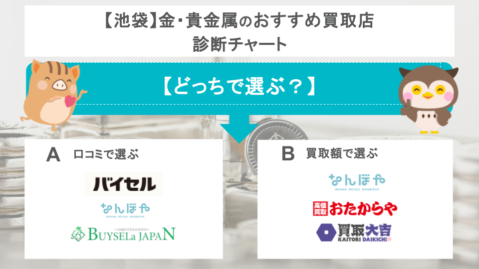 池袋エリアにおいて、特におすすめの金・貴金属買取店を上のチャートにまとめました。