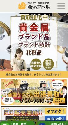 詳細へ電話する | ★★★★☆4.8 | 専門知識豊富な査定士が在籍 | – | ○ | ○ | – | 全国 | 全国 | 年中無休(問い合わせ) | 8:00〜21:00 | ブランド品、時計、金・貴金属、宝石など | 第451380001308号 |