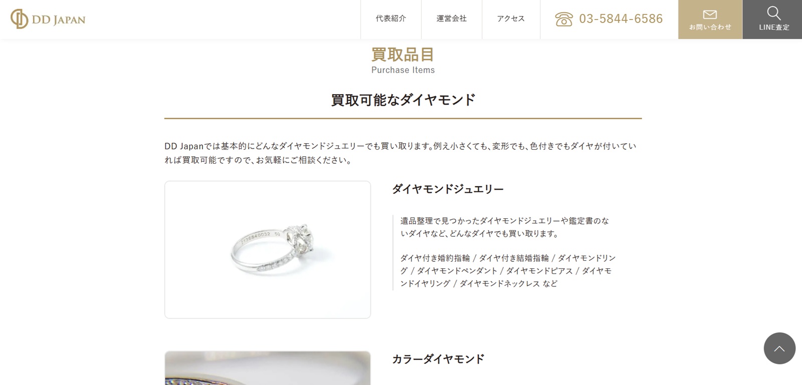 | DD Japan | 詳細へ | ★★★★☆4.9 | ダイヤモンドの専門買取店 | ○ | ○ | ○ | あり | 東京都豊島区 | 要問い合わせ | なし(問い合わせ) | 11:00~19:00(問い合わせ) | ダイヤモンド、金、プラチナなど | 第305470708919号 |