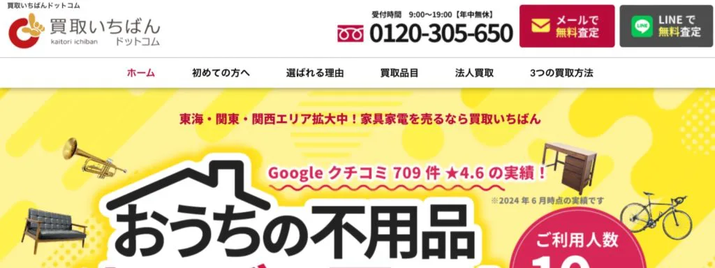 買取いちばんドットコム名古屋センターでは、スピーディな出張買取が期待できます。大きな家具や家電を売りたい場合も、名古屋市内であれば最短30分で訪問してくれる点は強みでしょう。1人で運びにくいタンスや冷蔵庫なども対応可能です。