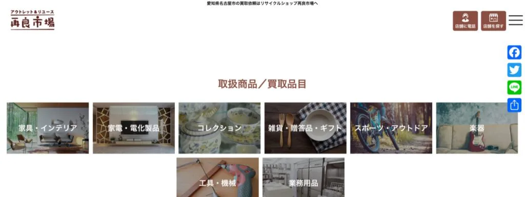 詳細へ | ★★★☆☆3.4 | 日用品から業務用品まで幅広く買取 | ○ | ○ | ○ | なし | 愛知県名古屋市中川区 | 愛知、岐阜、三重 | 木曜日 | 10:00~19:00 | 家具家電、工具、フィギュア、楽器など | 第541210700400号 |