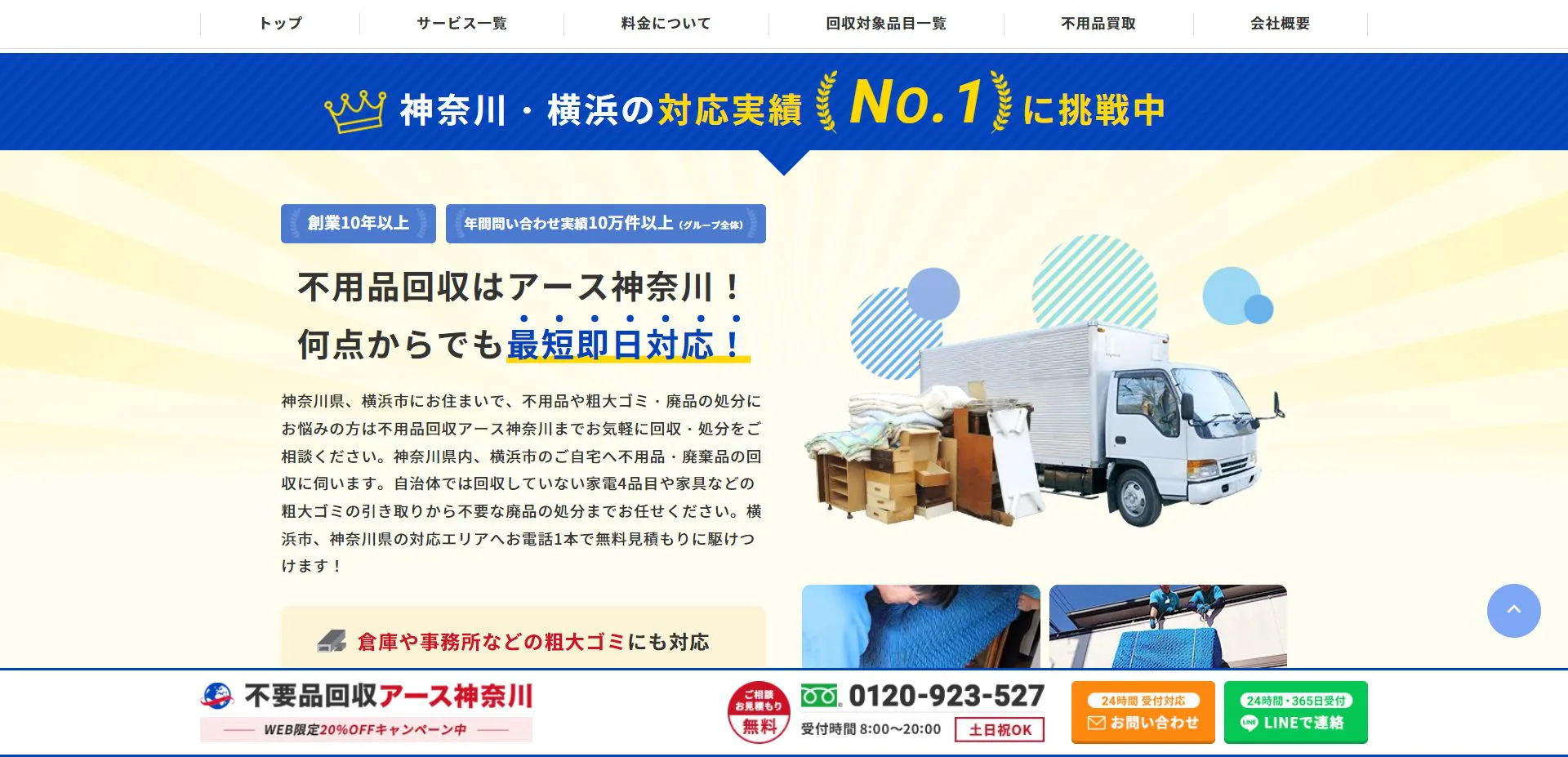 | その他特徴 | 遺品・税全整理・法人不用品回収 |