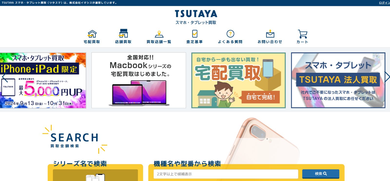 TSUTAYA(ツタヤ)は、スマホ買取サービスの累計利用者数が20万人を突破しています。買取台数は25万台以上にのぼり、買取実績が充実。スマホの買取実績が豊富な店舗でiPhoneを査定してもらいたい方におすすめです。