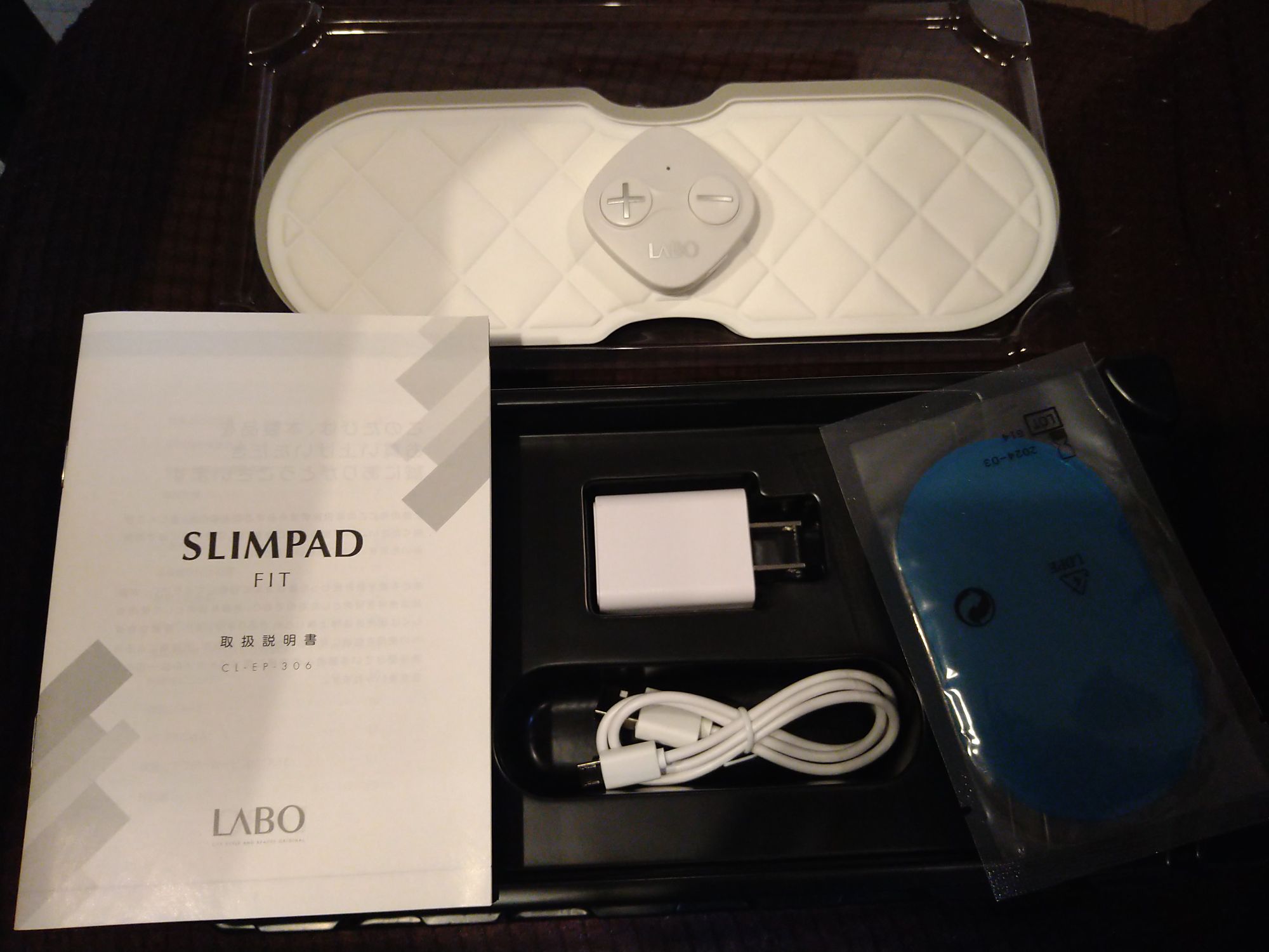 ゲルパッド2枚、保管用トレイ、電源アダプター、USBケーブル、取扱説明書