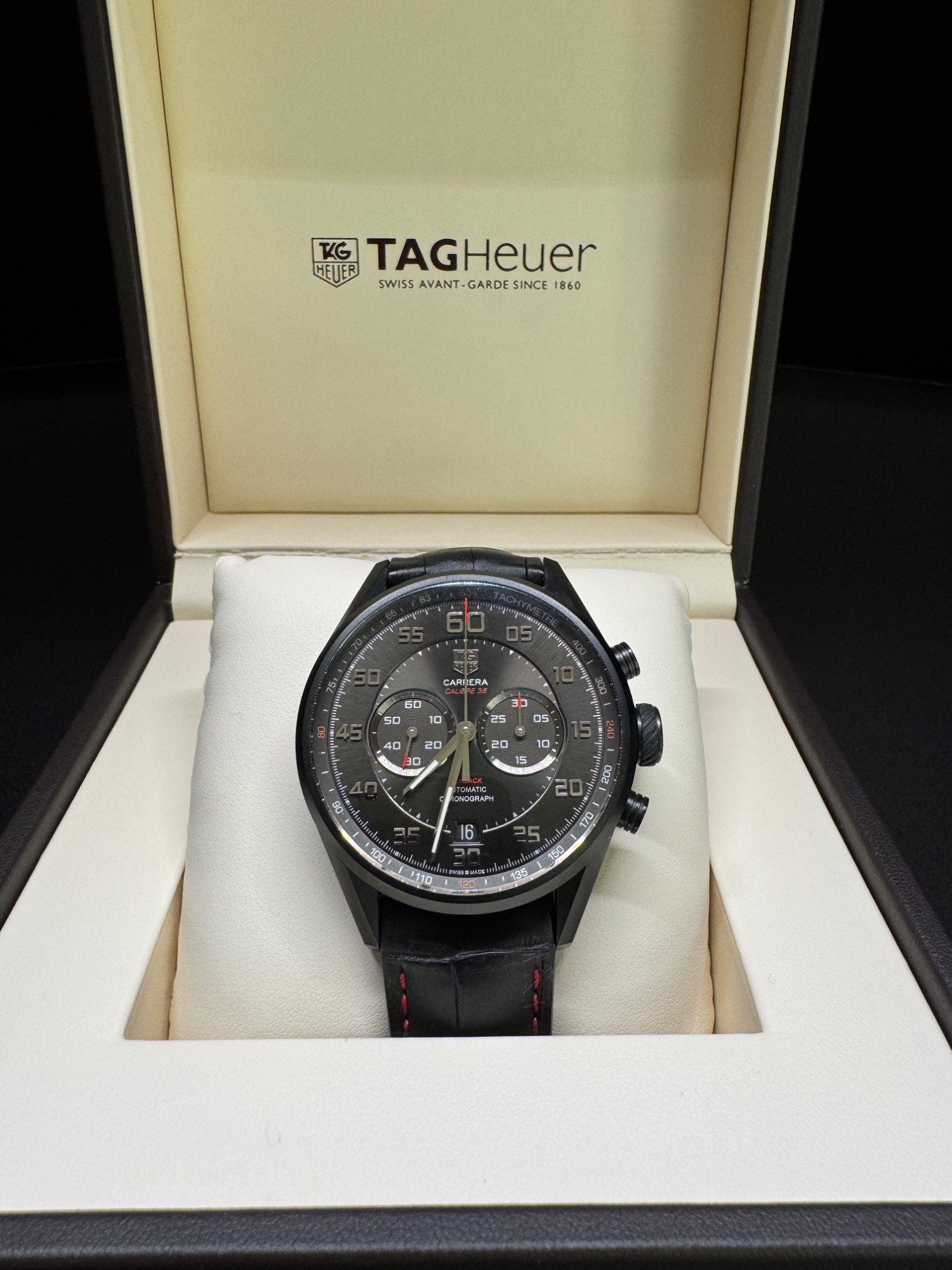 キャリバー36標準の革ベルトは綺麗(写真5枚目)