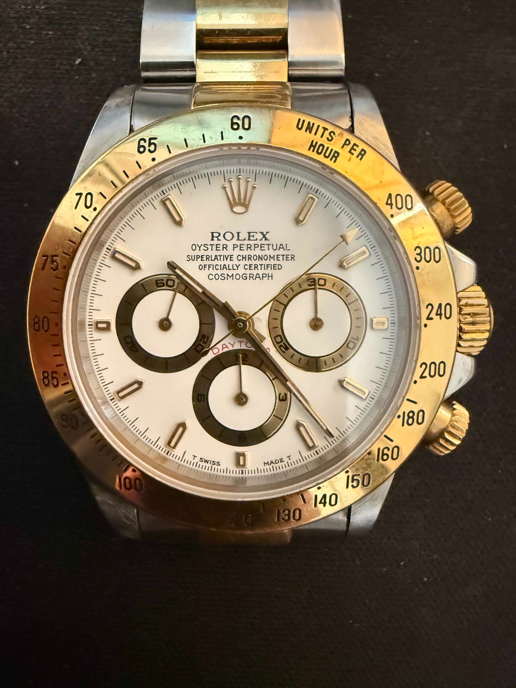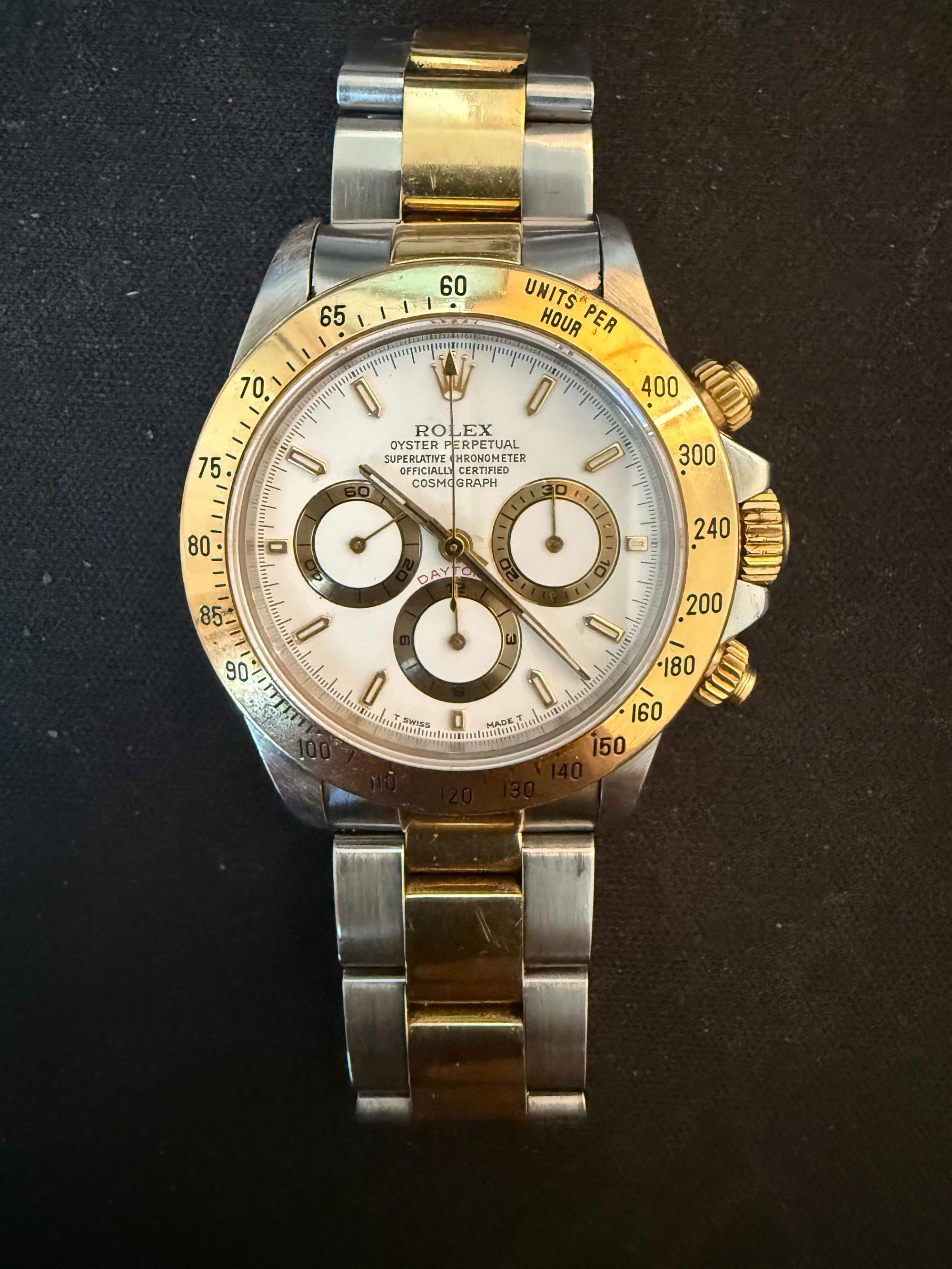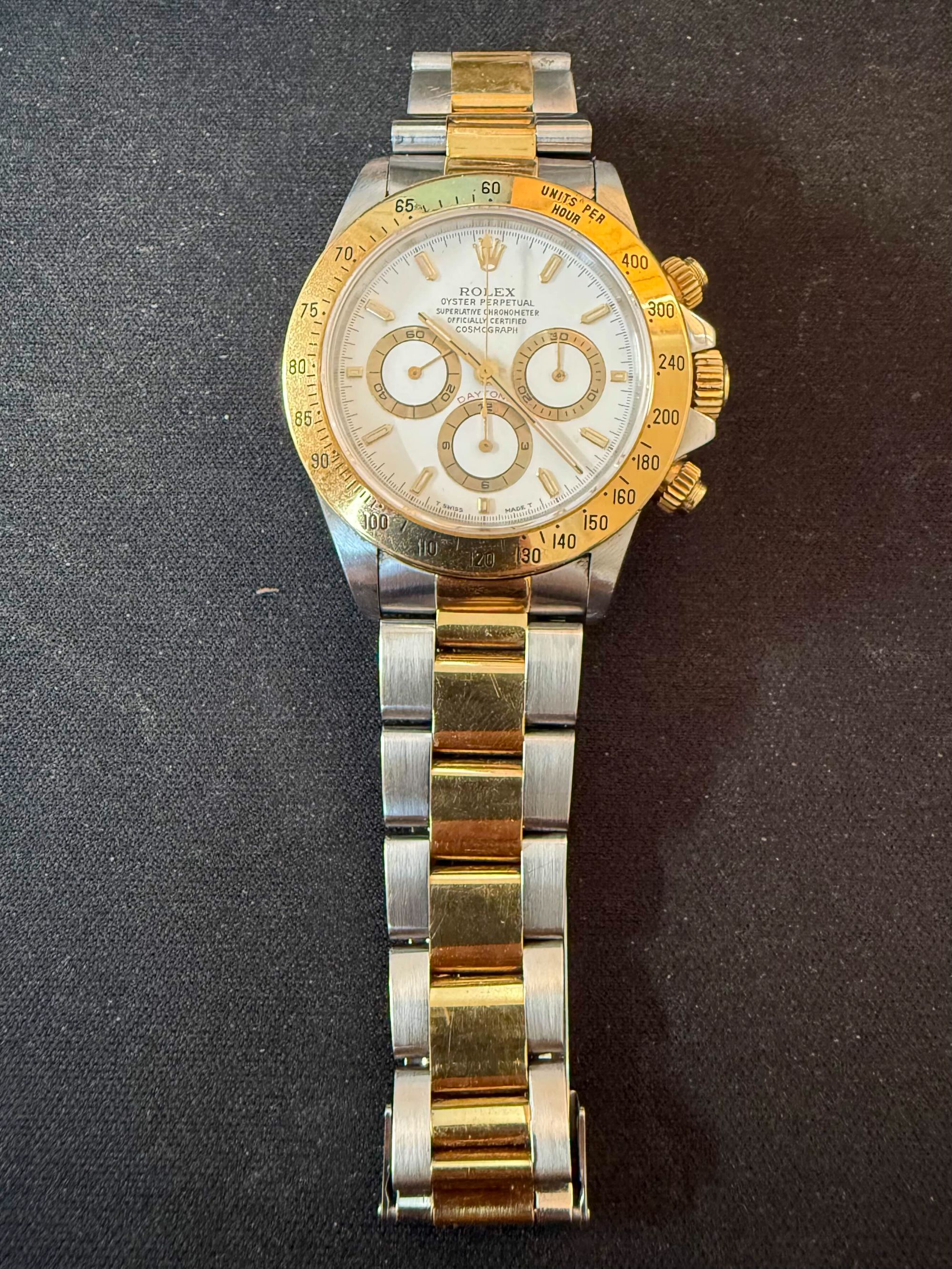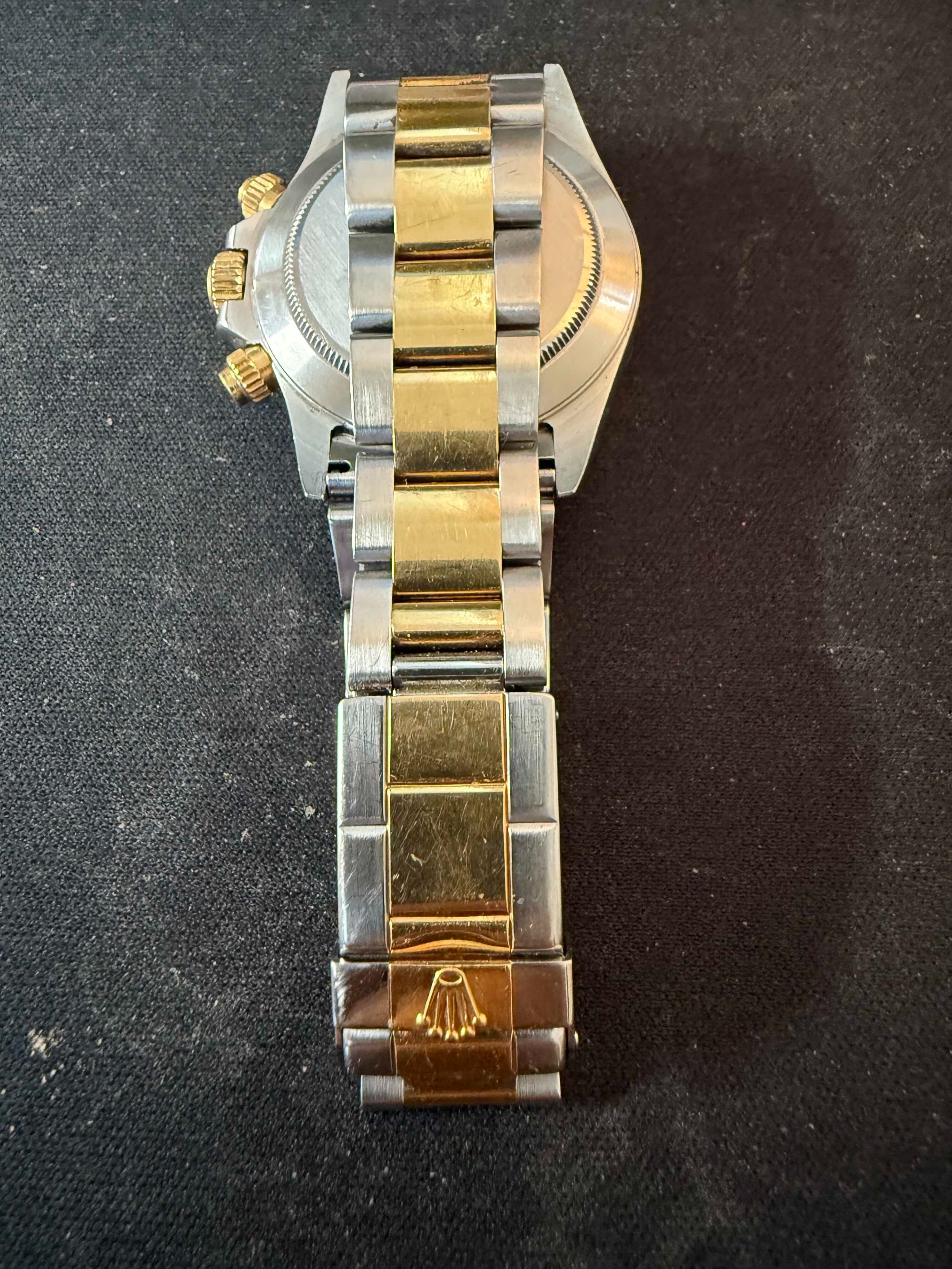 付属品:ベルト調整コマ、ショップ保証書、箱、説明書無し、購入時期:2002年中古で購入、商品状態:目立たないが小傷あり、数年前に時計店でオーバーホールとリューズ修理、リューズは社外部品(ゼニス社製部品)で修理、そのためリューズは2段階ではなく3段階出るが本体とクロノグラフは正常に作動、利用頻度...