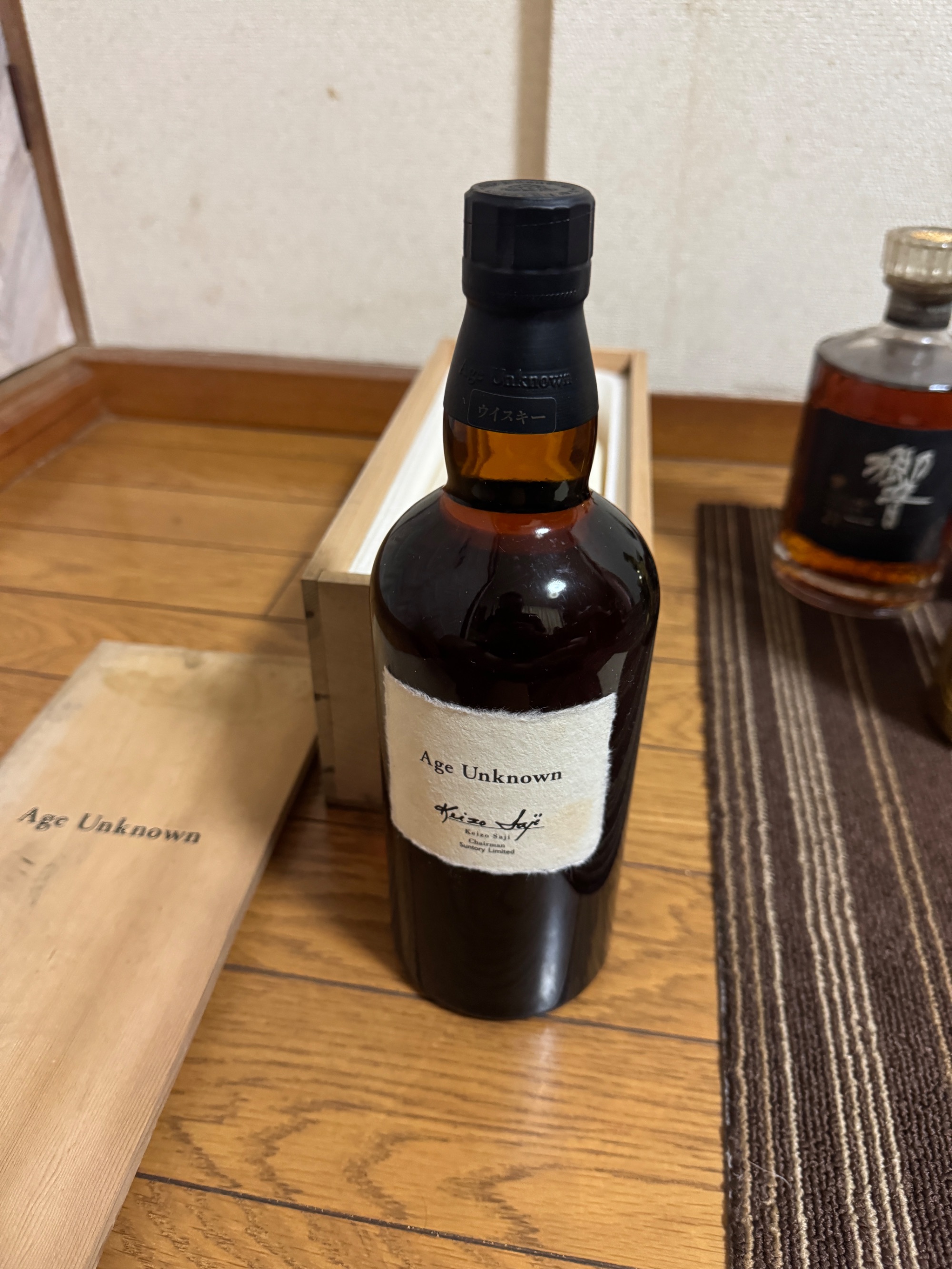 長期間床下で保存していたため木箱にはシミがあります。