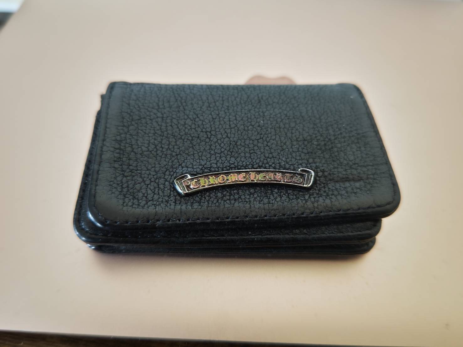 クロムハーツ ウエーブウォレット クロスボタン ブラックヘビーレザー