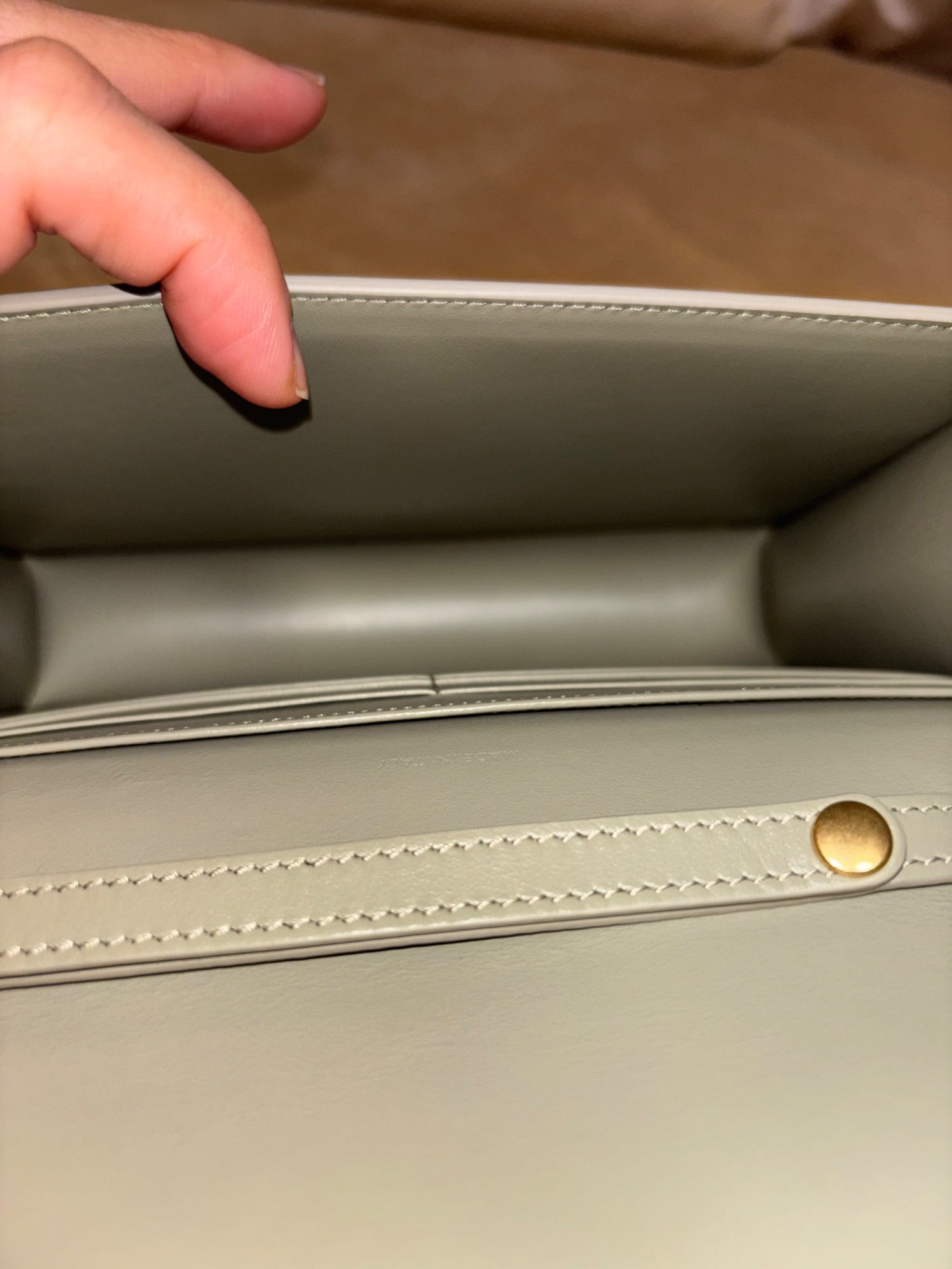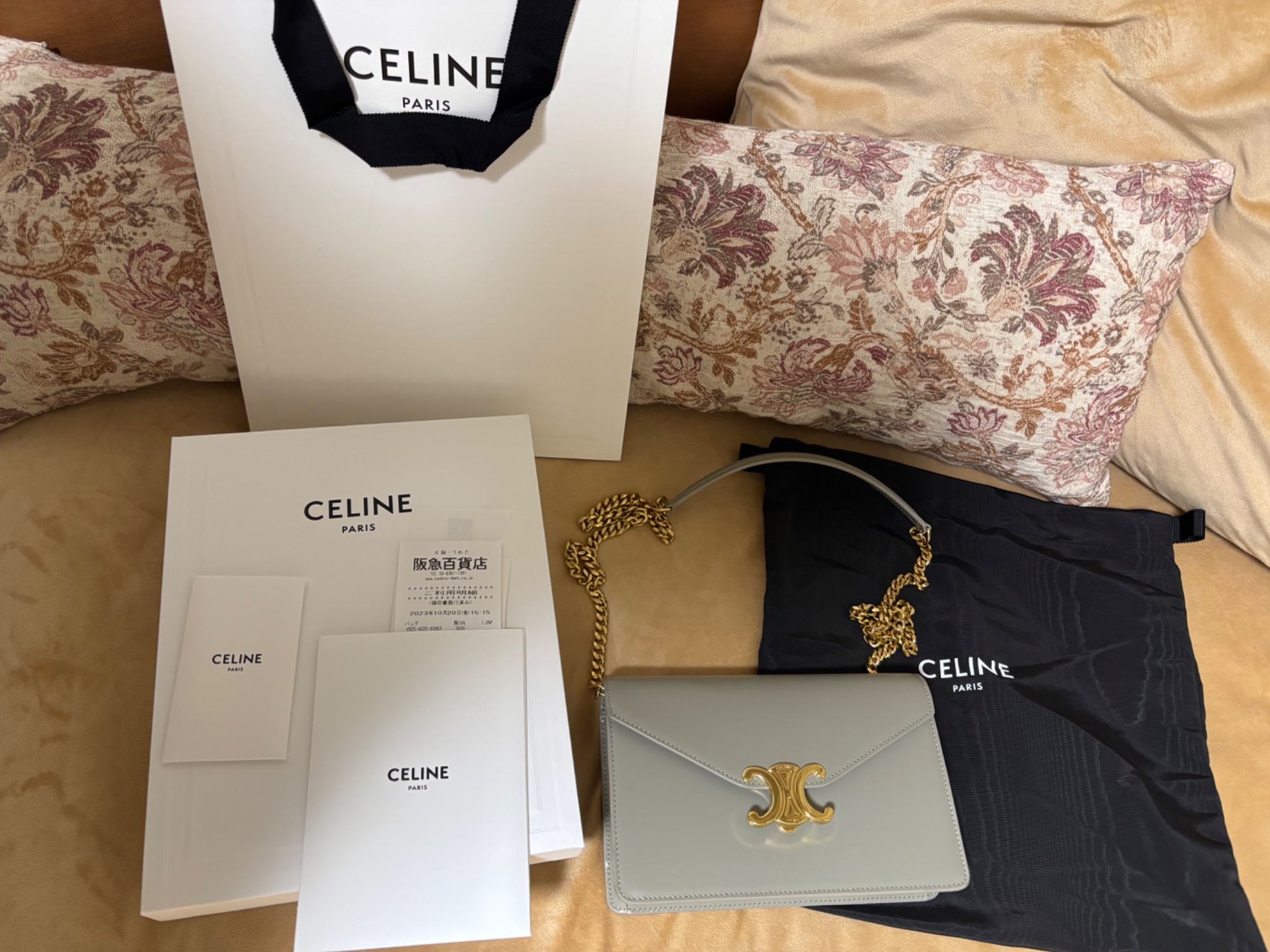 阪急百貨店で購入。付属品完備。2度程しか使用しておらず新品同様の美品だと思います。 色はグリーンクレイ 現行品です。
