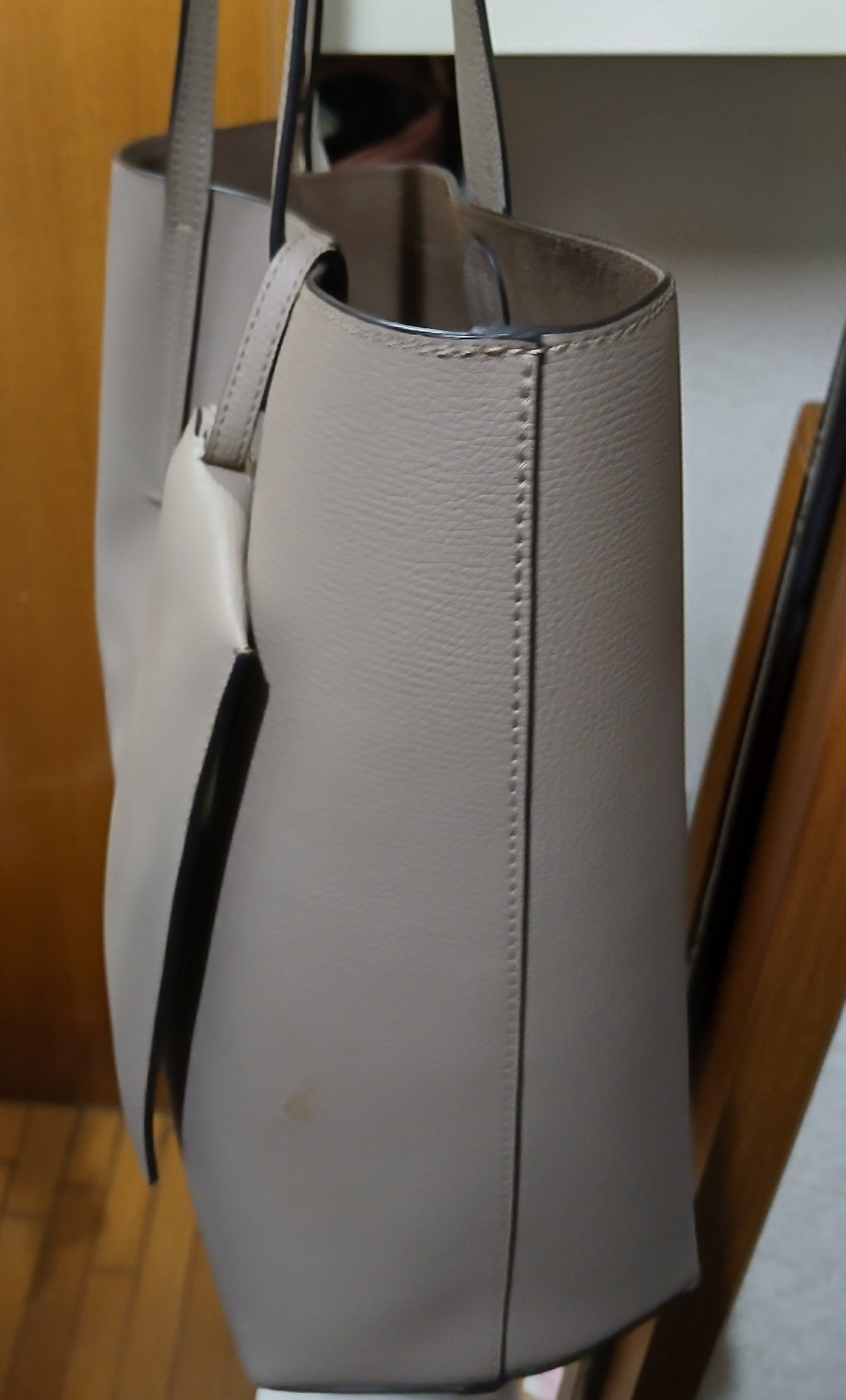 袋と封筒入り紙ショップカード、2020年10月頃ネットのブランドショップ購入、数回使用、左側脇腹あたりに、ボンドみたいな?薄オレンジシミあり10ミリ位