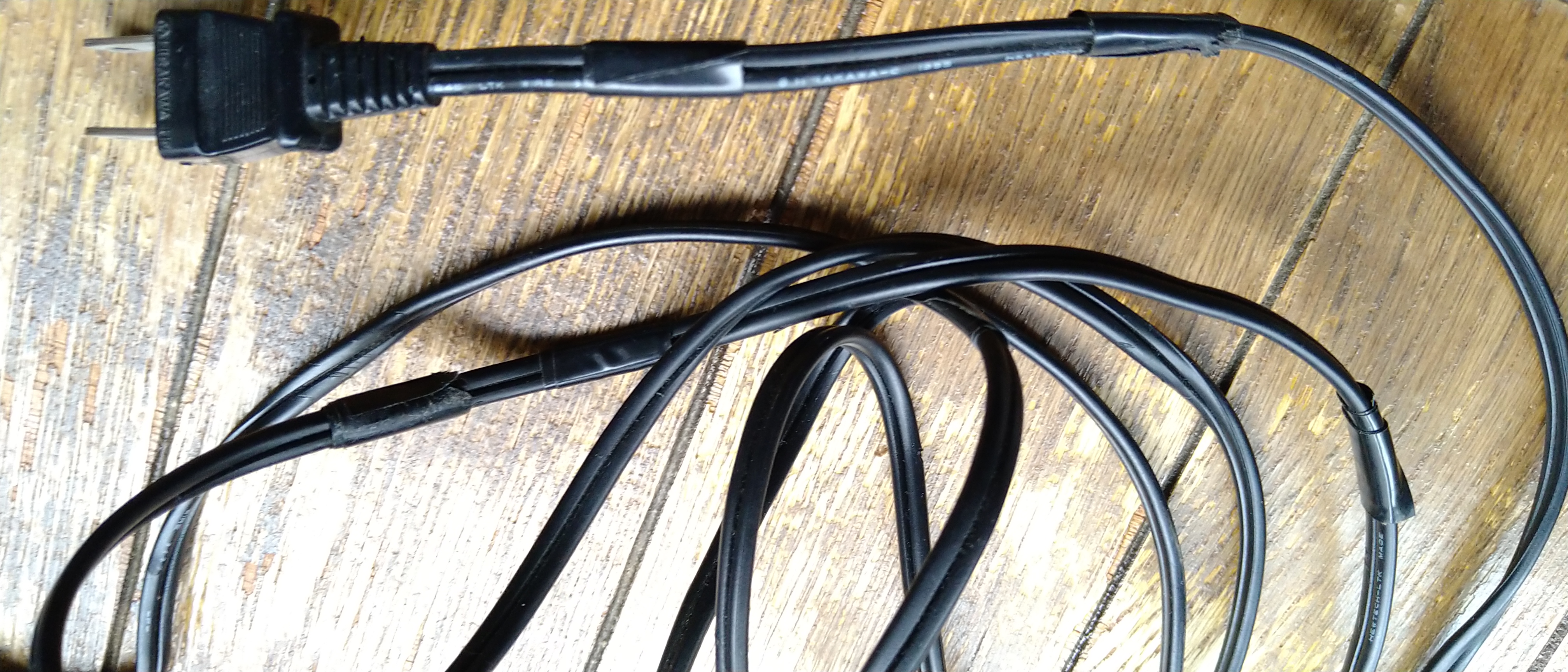 電源コードはむき出しの箇所があり、8ヶ所ビニールテープを貼っています。