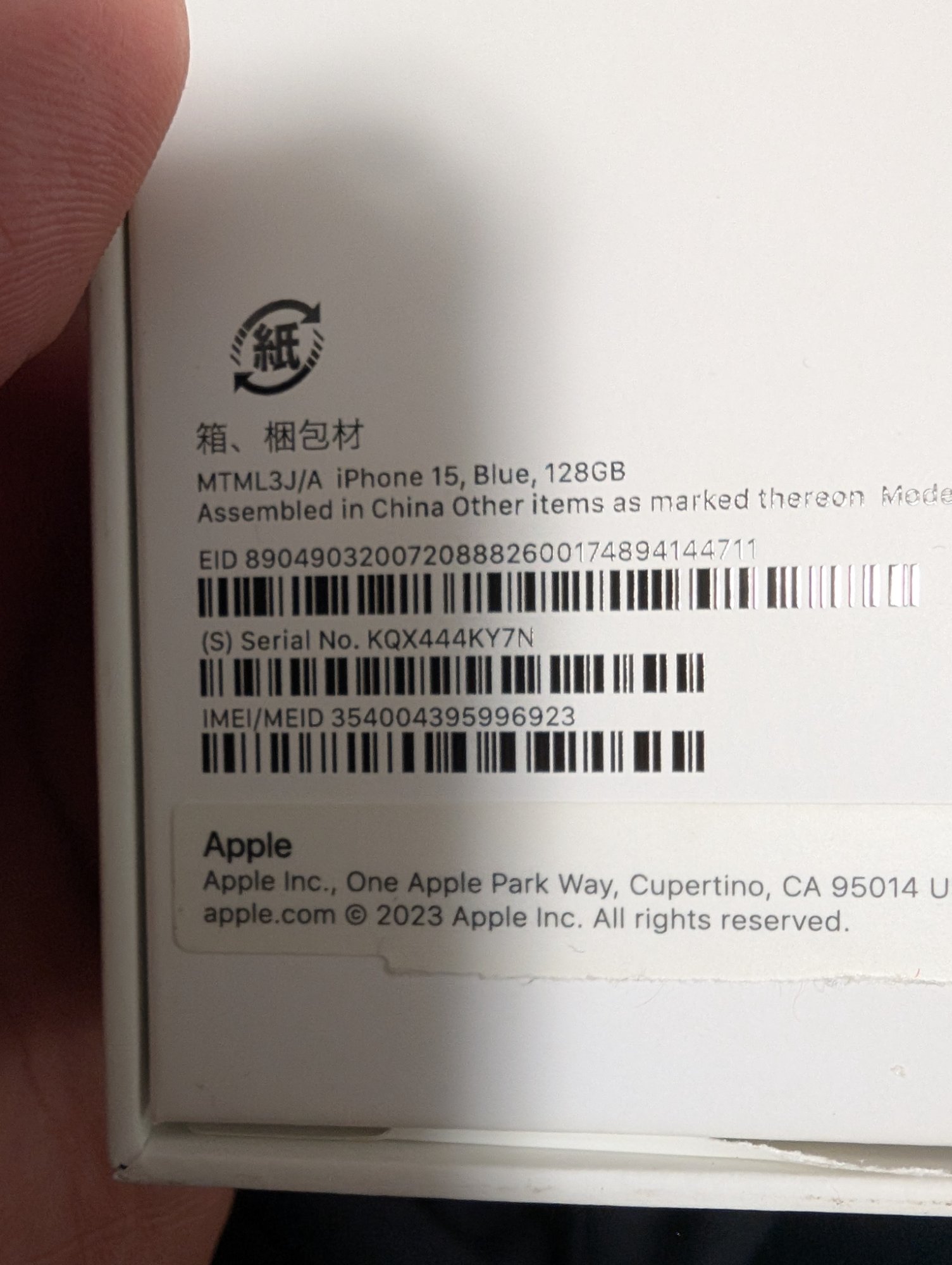付属品:箱、SIMピン、付属紙