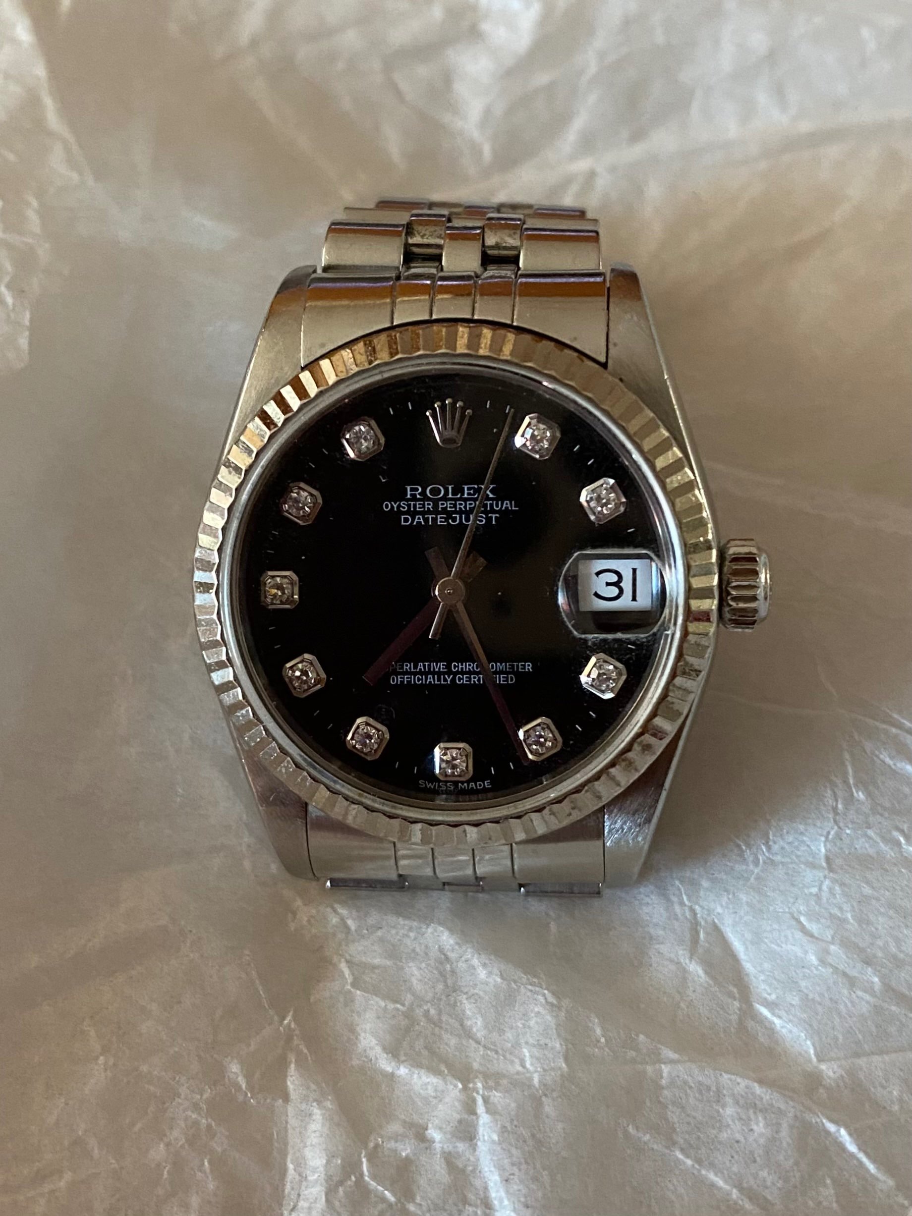 黒の文字盤、10ダイヤモンズ、ボーイズサイズ