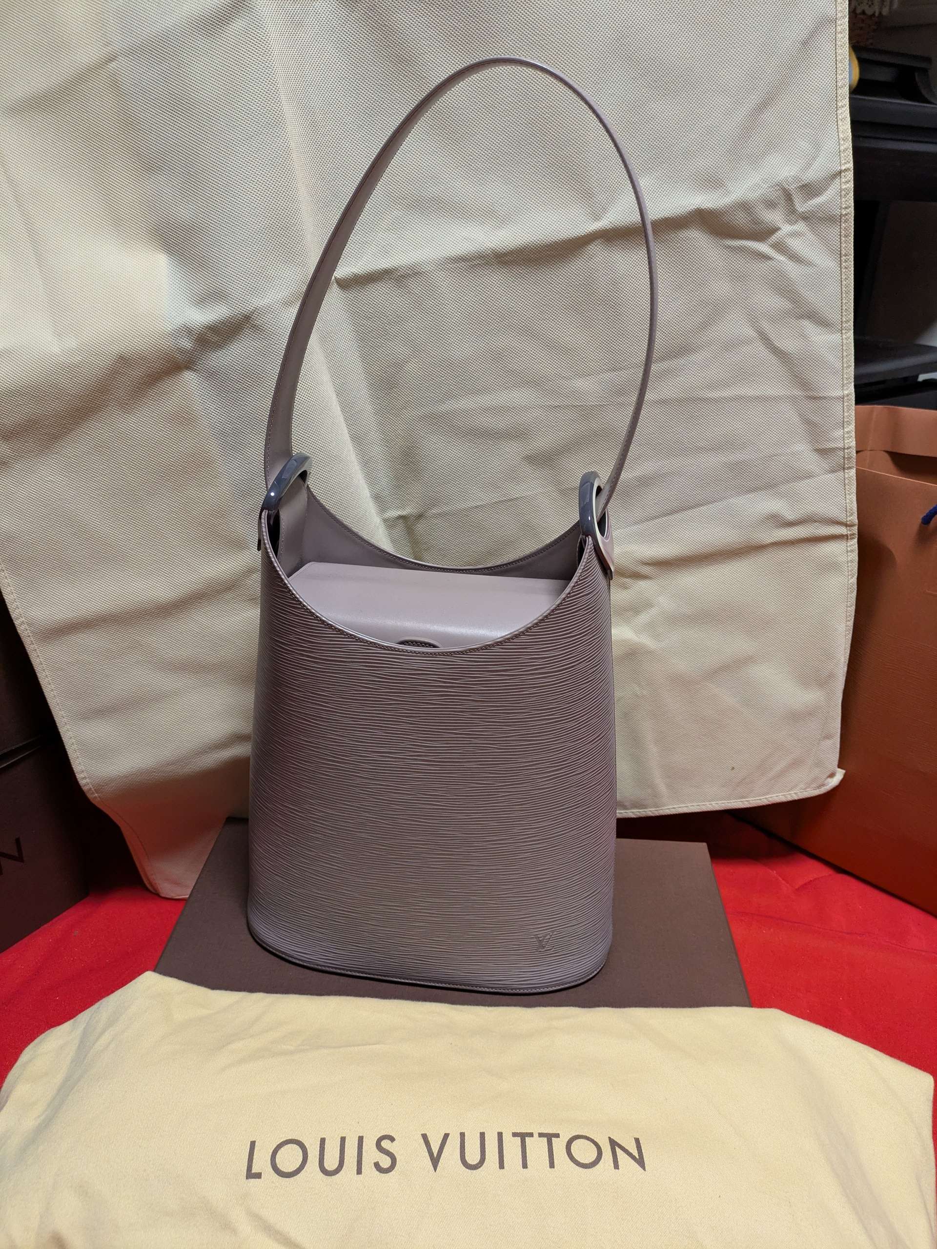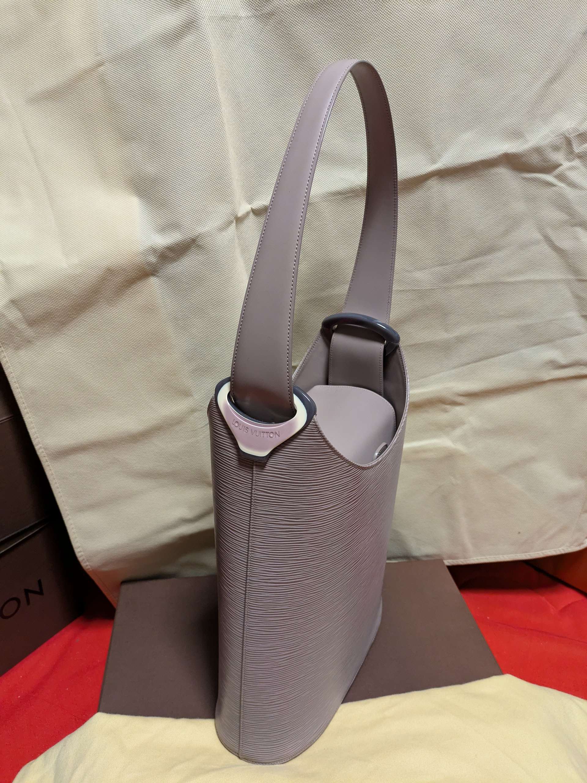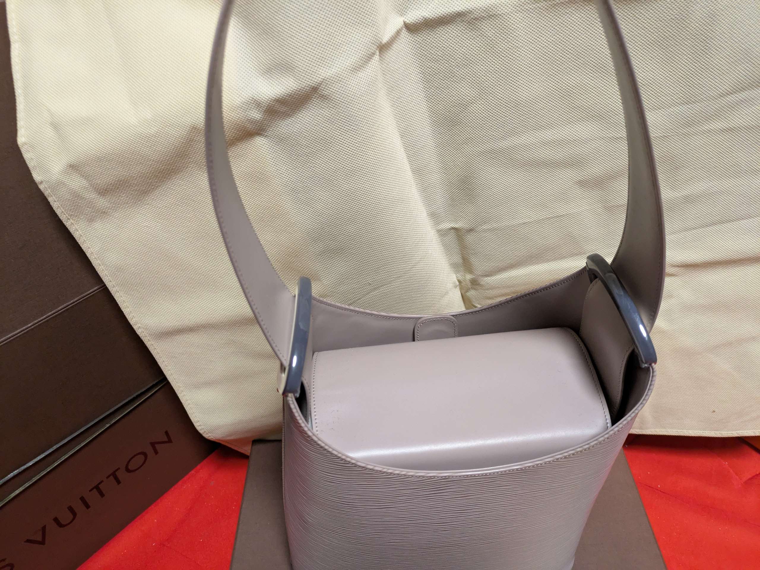 布袋あり。型崩れなし。パープルですが、若干色あせあり。