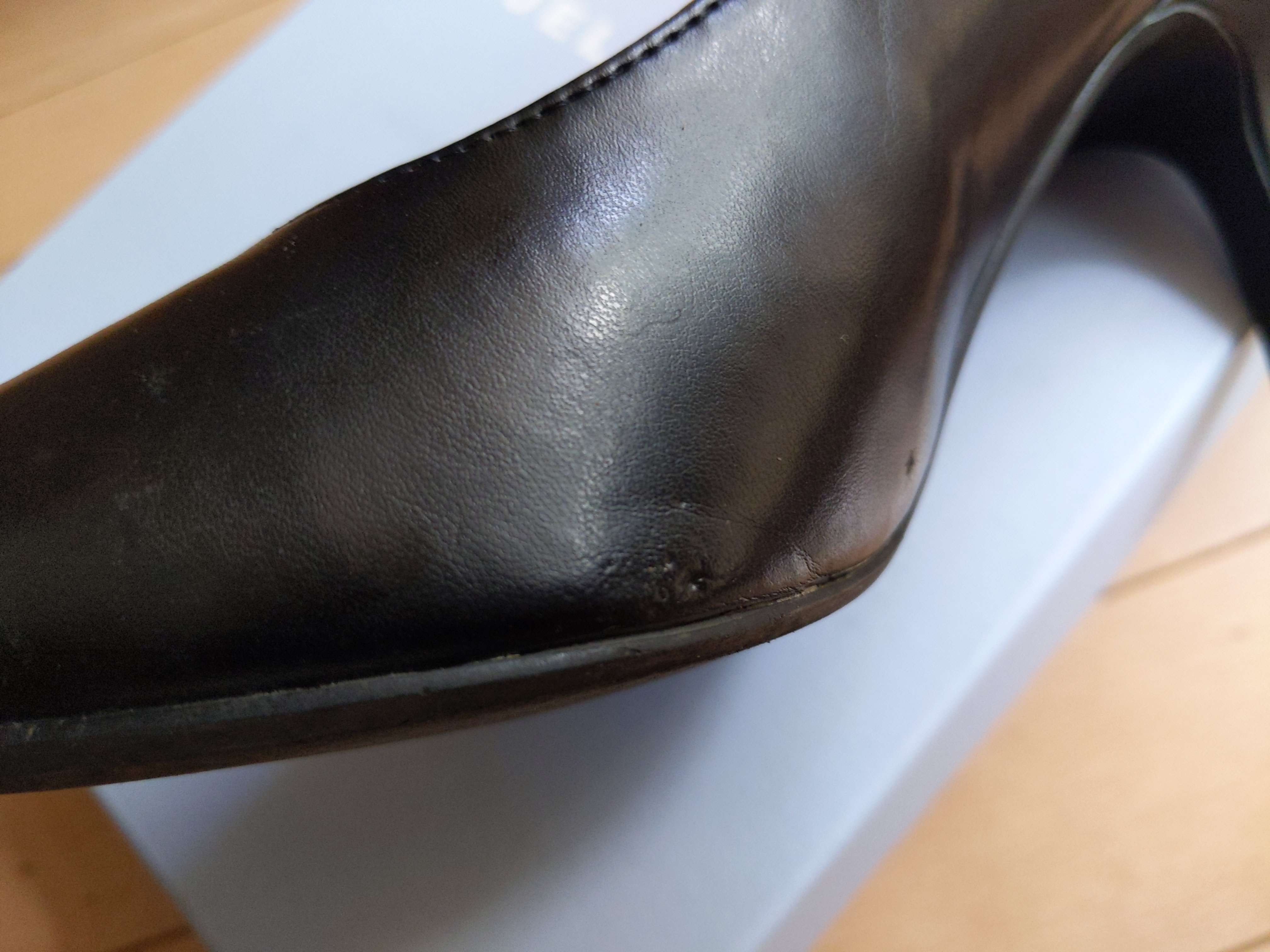 一度だけ使用。およそ200メートル歩いただけ痛くなり履けないので断念して保管。箱はありますが、中に汚れがあります。片足の側面に小さな傷があります。