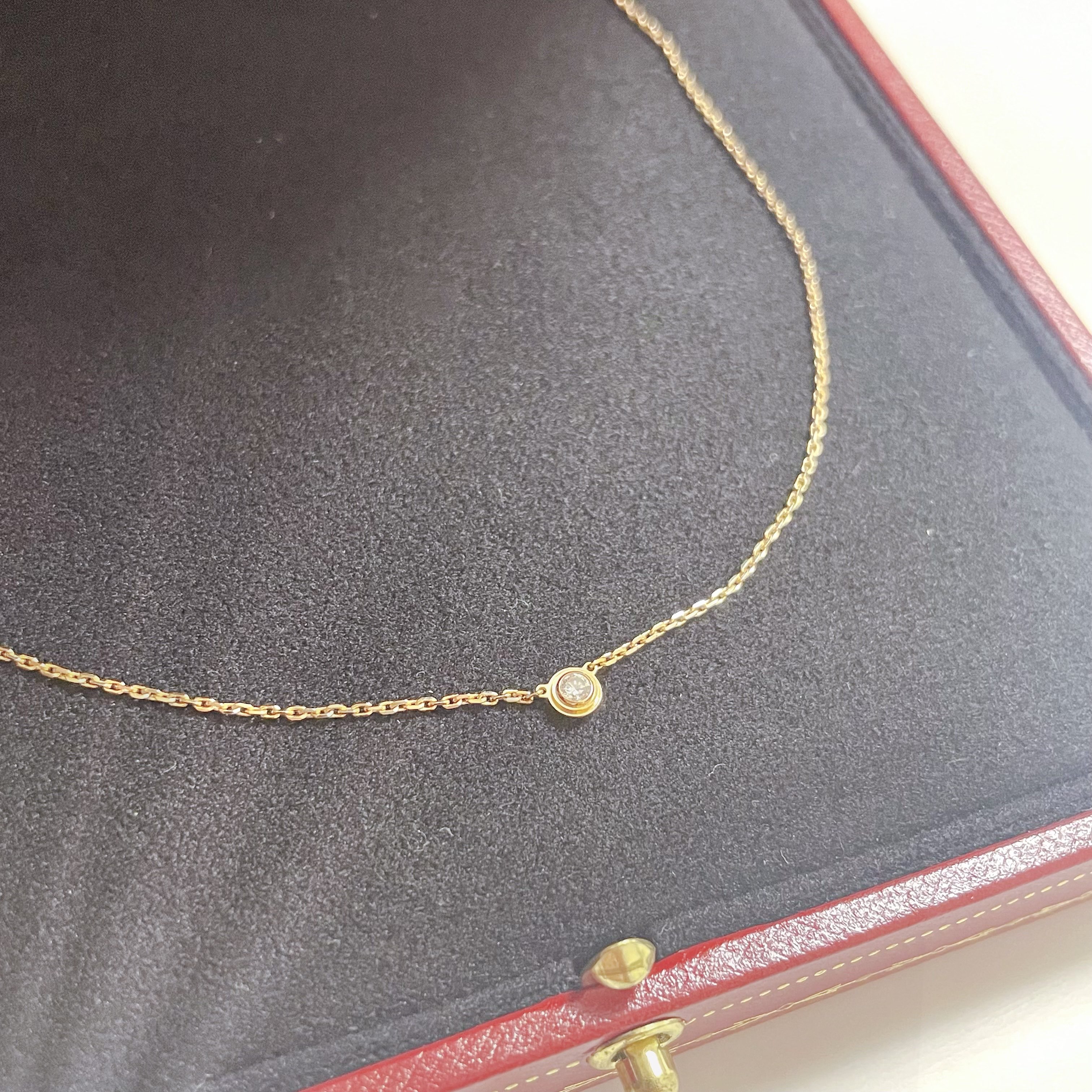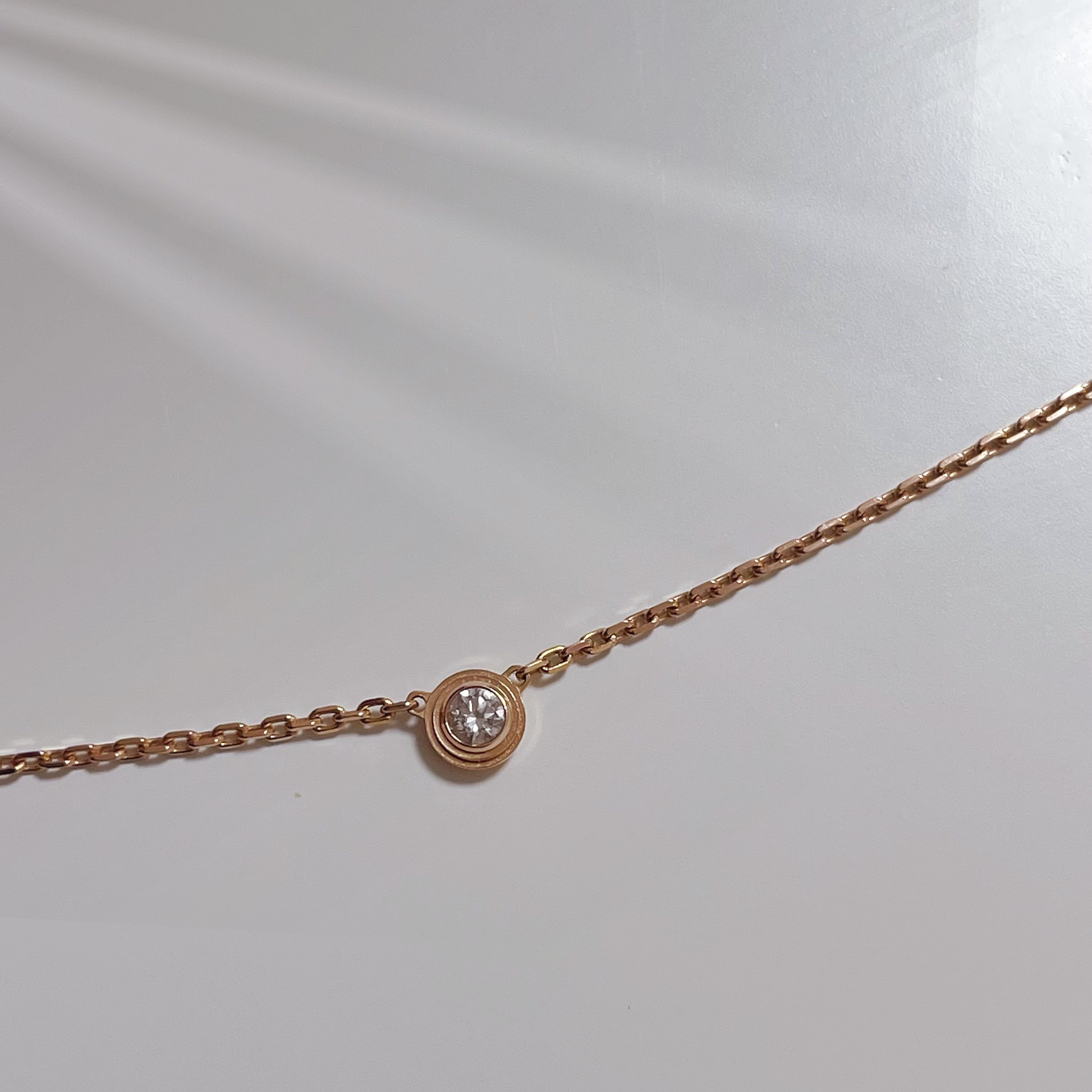 カルティエ ダムール ネックレス、ピンクゴールド750/1000、ブリリアントカット ダイヤモンド1石(計0.04ct)モチーフの直径3.79㎜ チェーンの長さ380㎜~410㎜