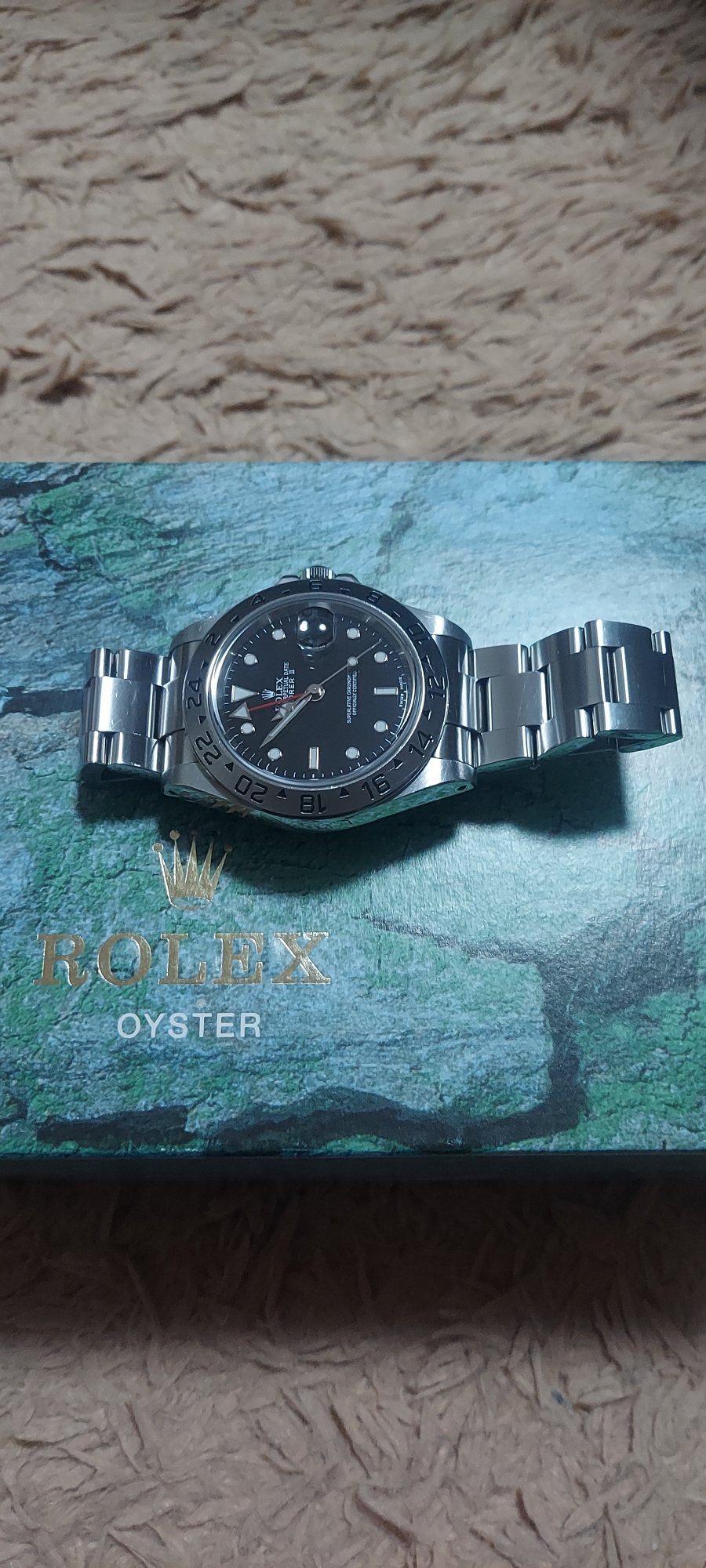 ROLEXエクスプローラ2、P盤、2000年製造、箱有り、ギャランティ有り、余りコマあり、付属品有り。使用頻度月一回程度です。