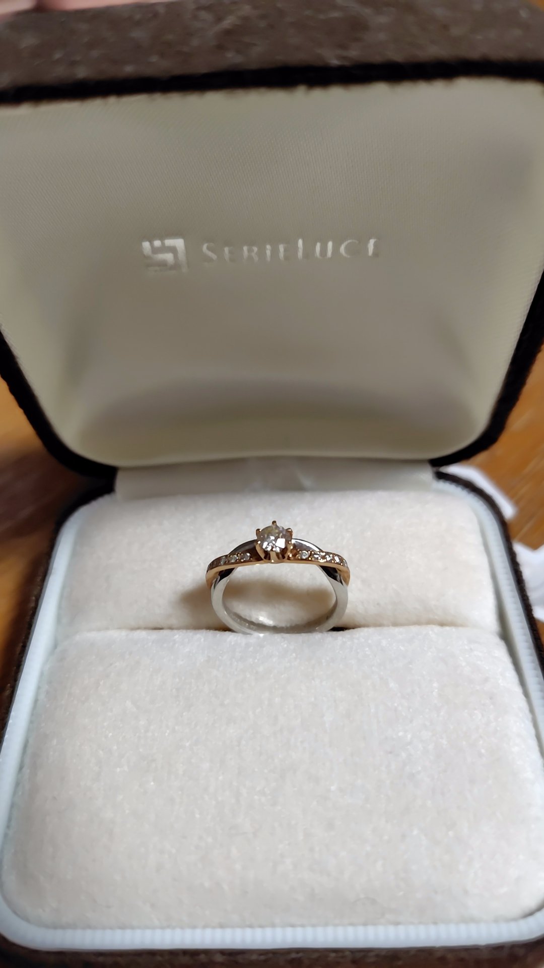 0.025カラット プラチナ ピンクゴールドが入ったデザイン指輪