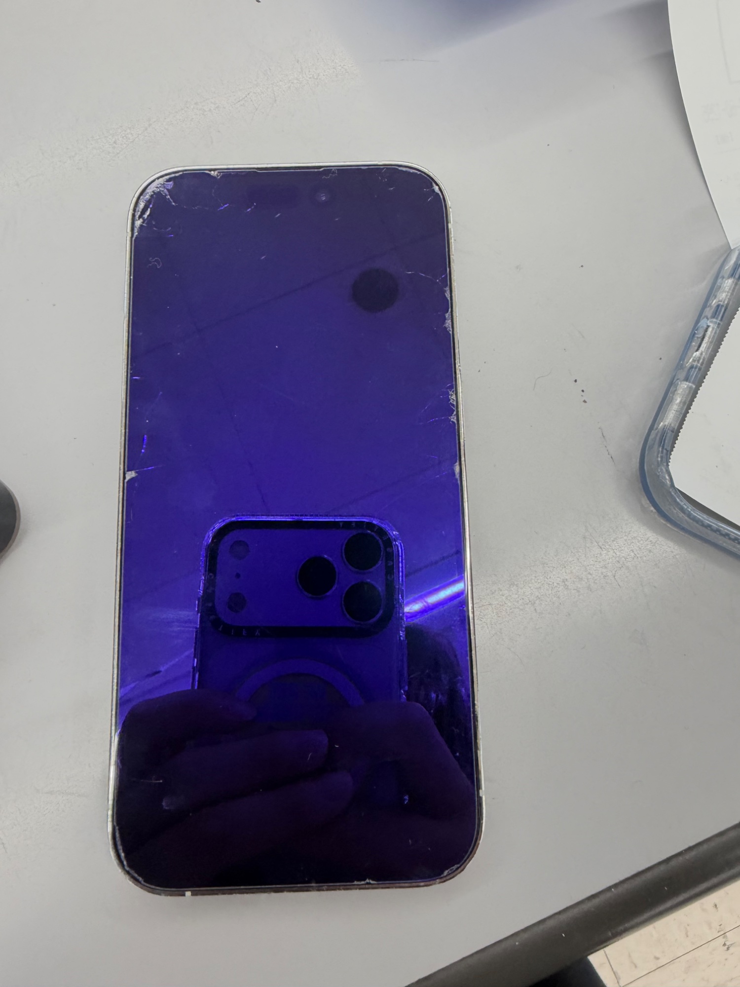 背面はヒビがあり、画面はフィルムが傷ついているだけで傷はありません。