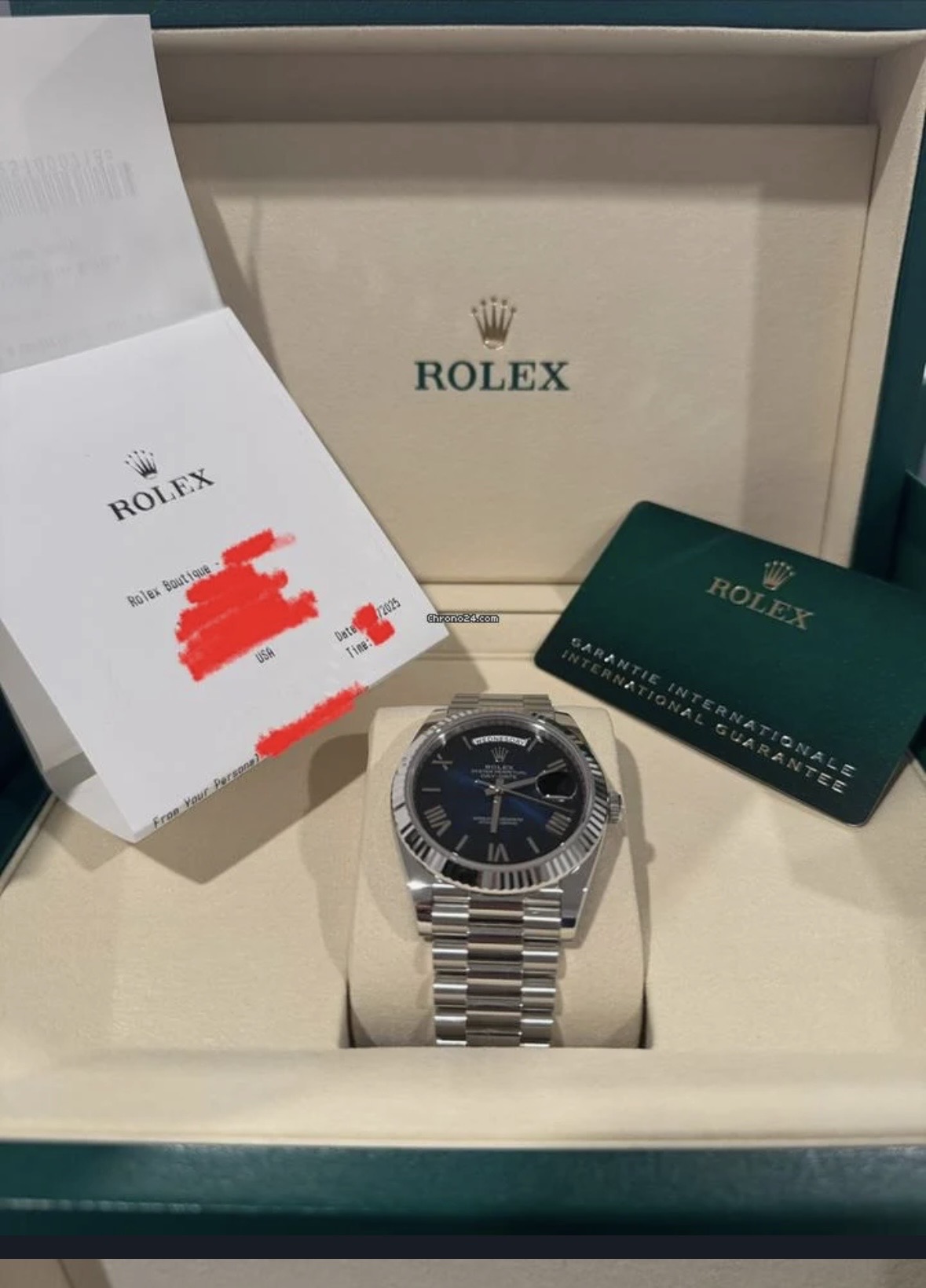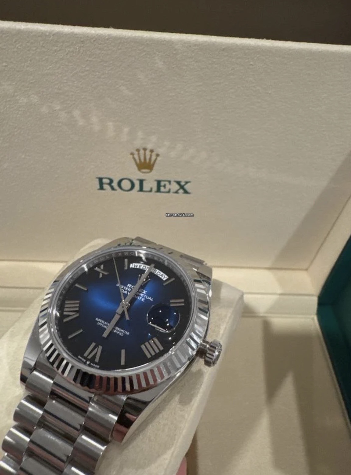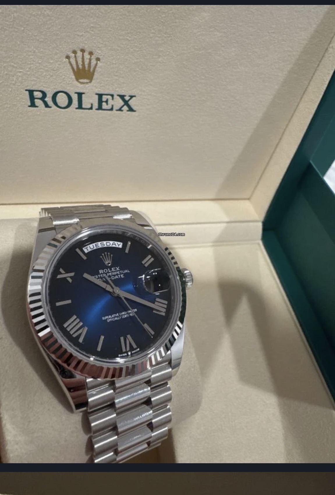 デイデイト40 フルーテッド プラチナ ブルーオンブレ