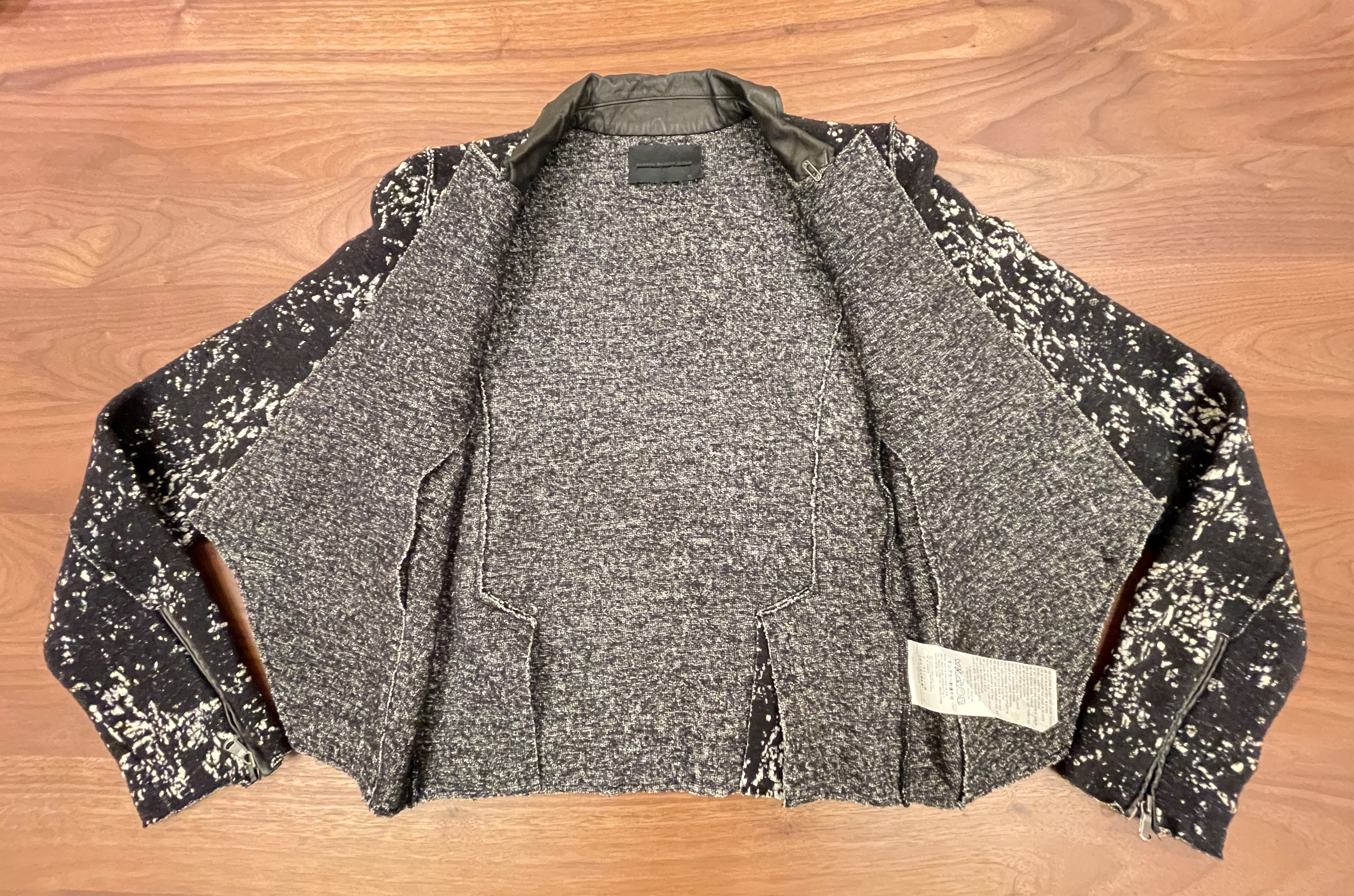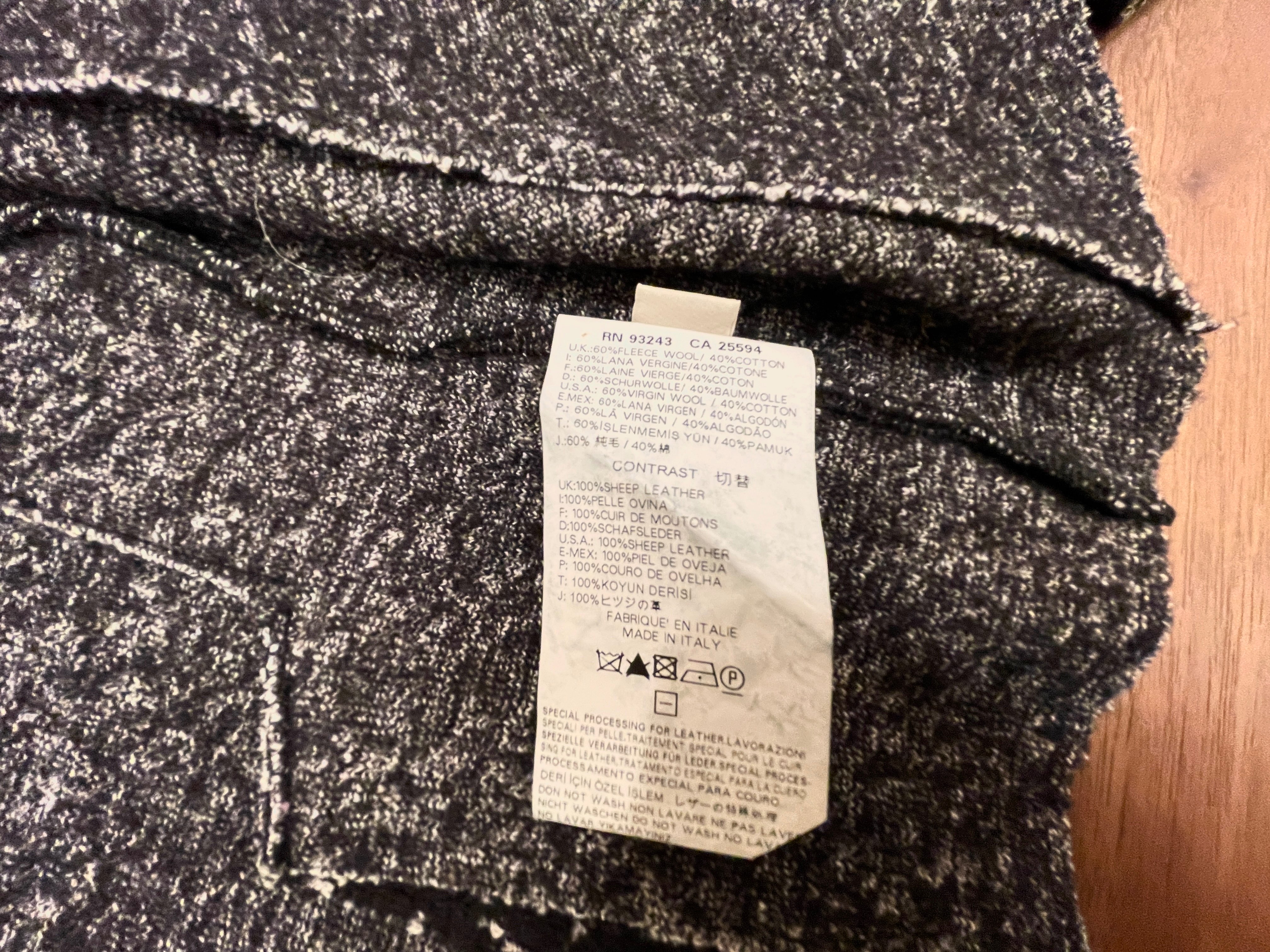 ウール60%×綿40%に、襟は羊革100%を使用したディテールが魅力。耐久性が高く、長く愛用できるジャケットです。